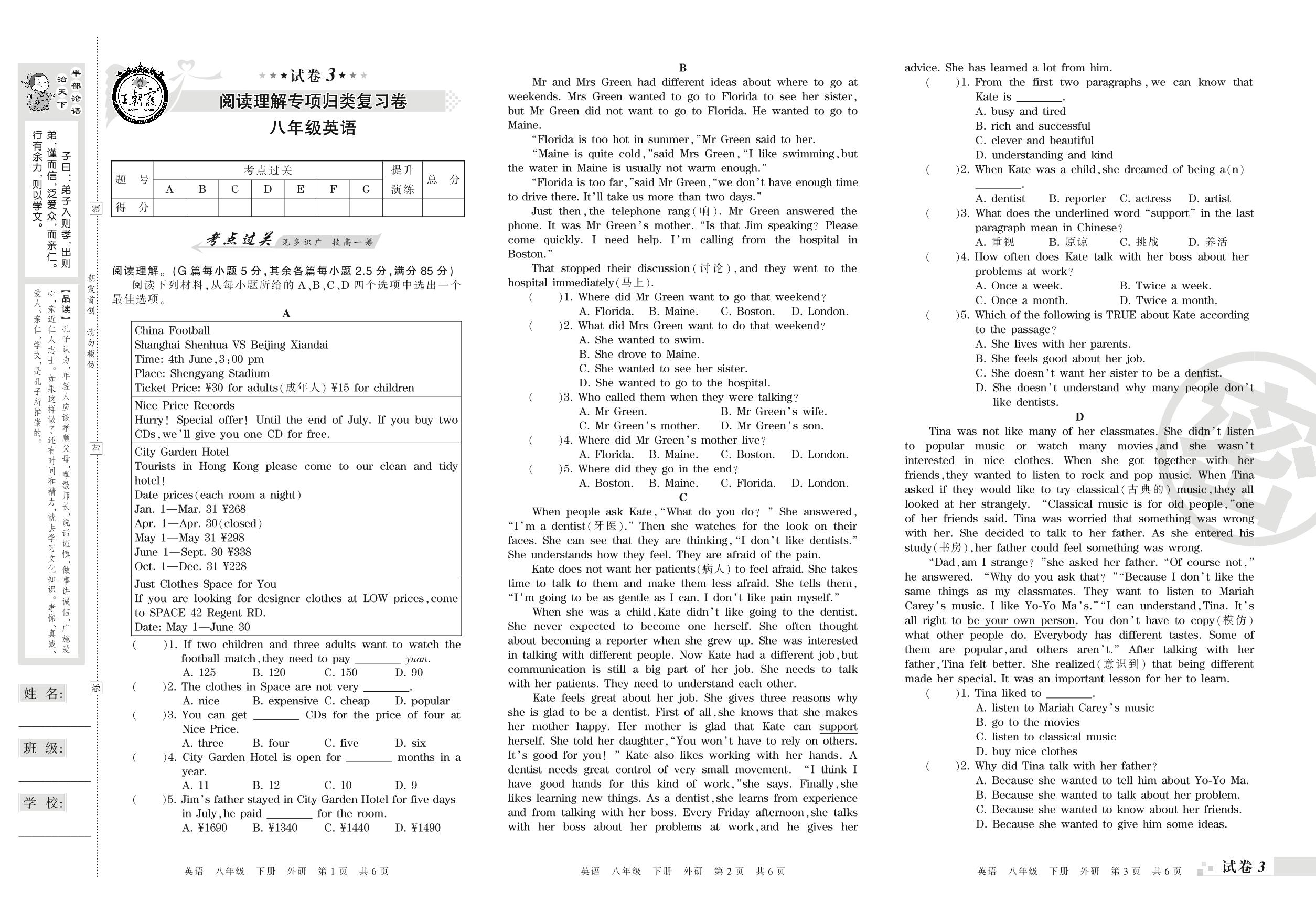 王朝霞期末专项卷——阅读理解专项归类复习卷八年级下册英语(外研版)【3】