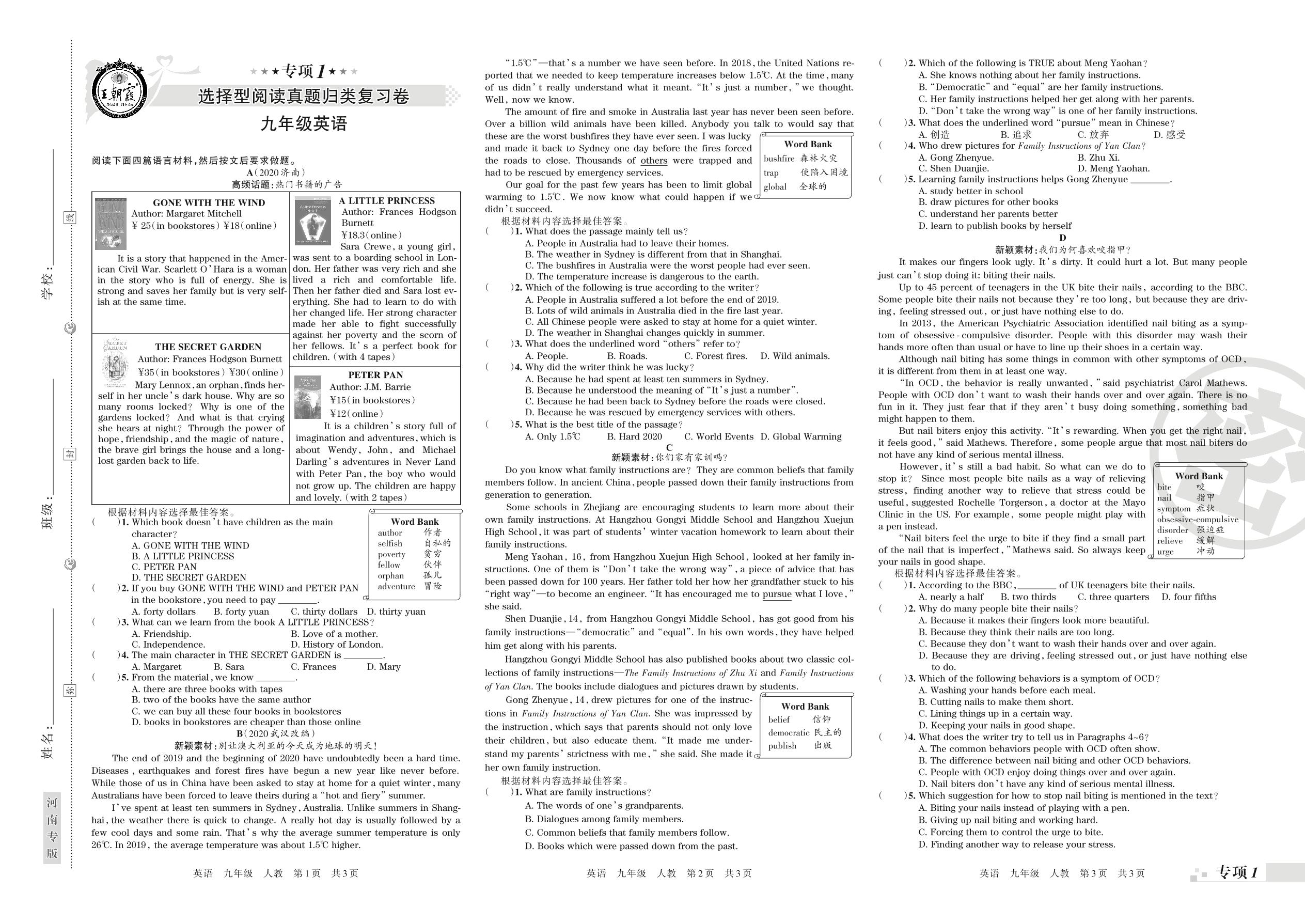 王朝霞期末专项卷——选择型阅读、任务型阅读真题归类复习九年级上册英语(人教版)【0】