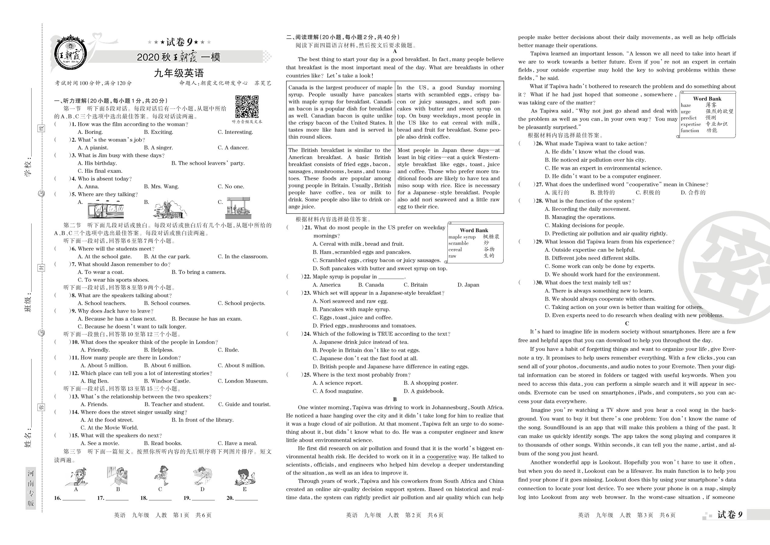 2020-2021学年第一学期王朝霞期末模拟卷九年级英语(人教版)_R210809150142【9】