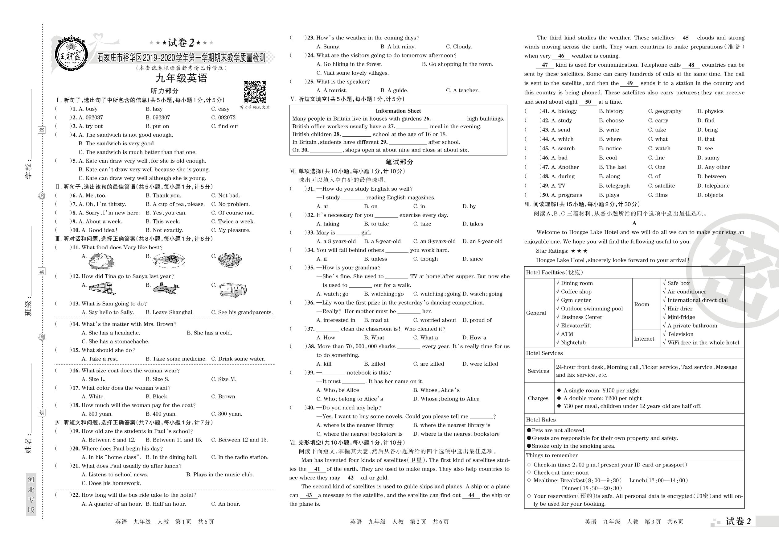 2019-2020学年第一学期石家庄市裕华区九年级英语试卷(人教版)【2】