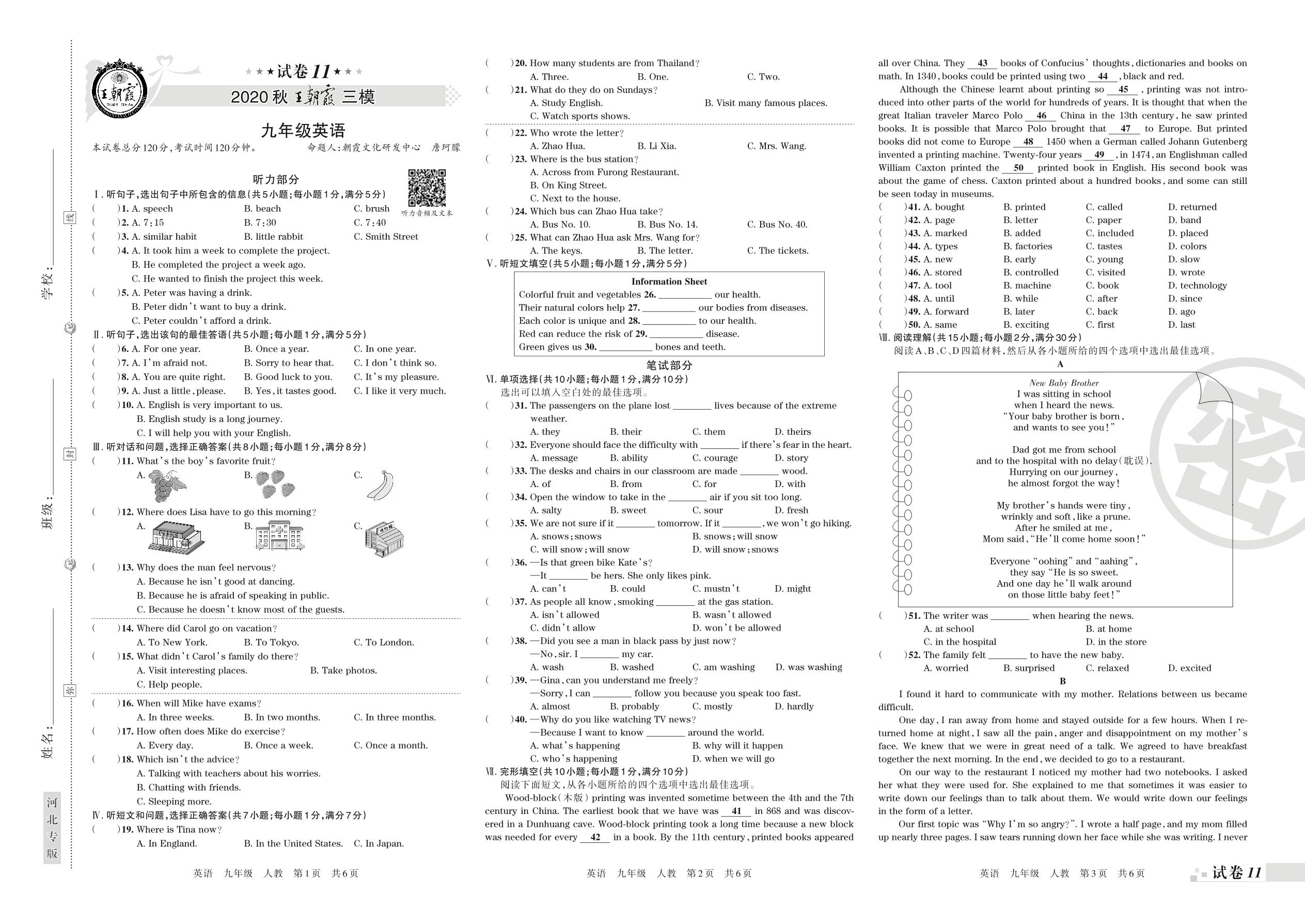 2020-2021学年第一学期王朝霞期末模拟卷九年级英语(人教版)_R210809150509【11】