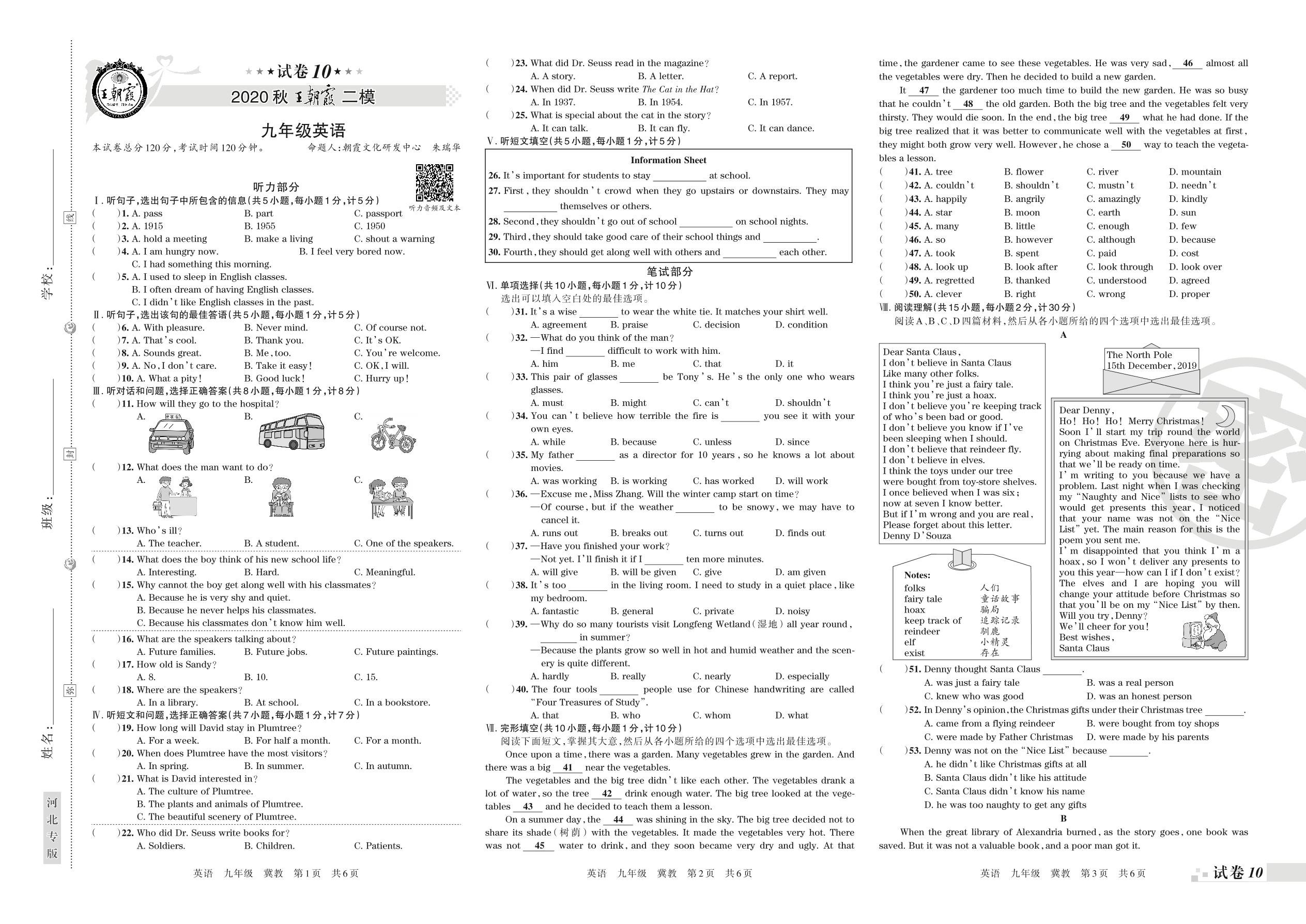 2020-2021学年第一学期王朝霞期末模拟卷九年级英语(冀教版)_R210809150725【10】