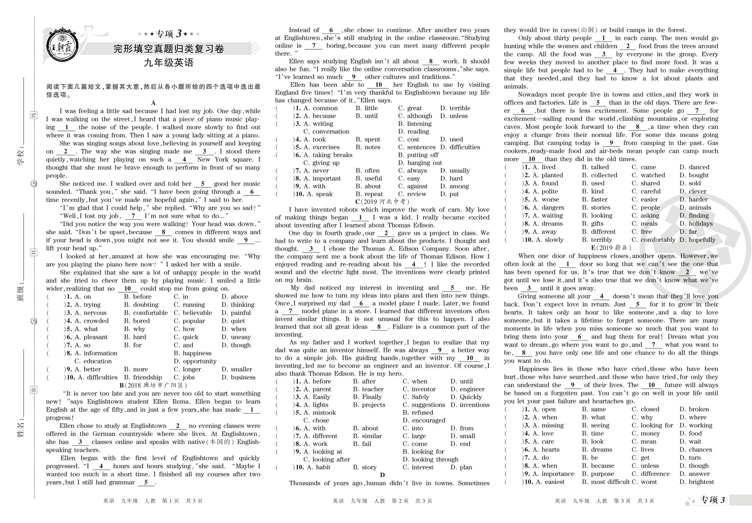 王朝霞期末专项卷——完形填空、阅读理解真题归类复习九年级上册英语(人教版)_R210809150757【0】