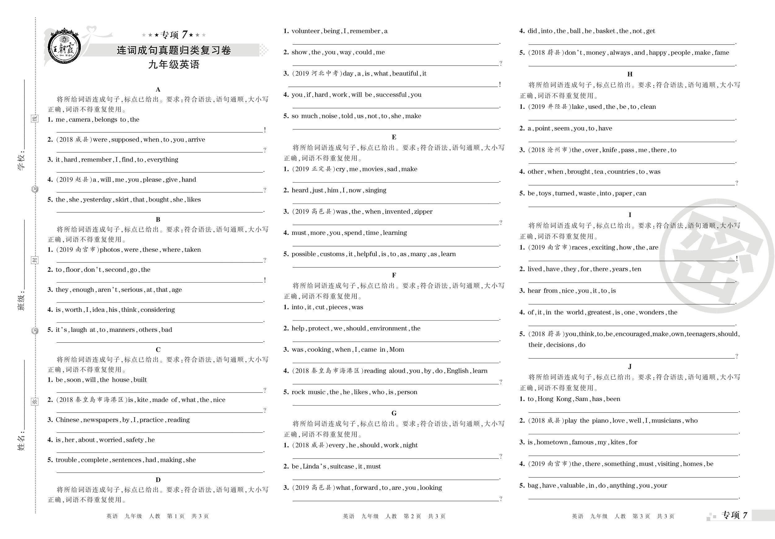 王朝霞期末专项卷——连词成句、书面表达真题归类复习九年级上册英语(人教版)_R210809150814【0】