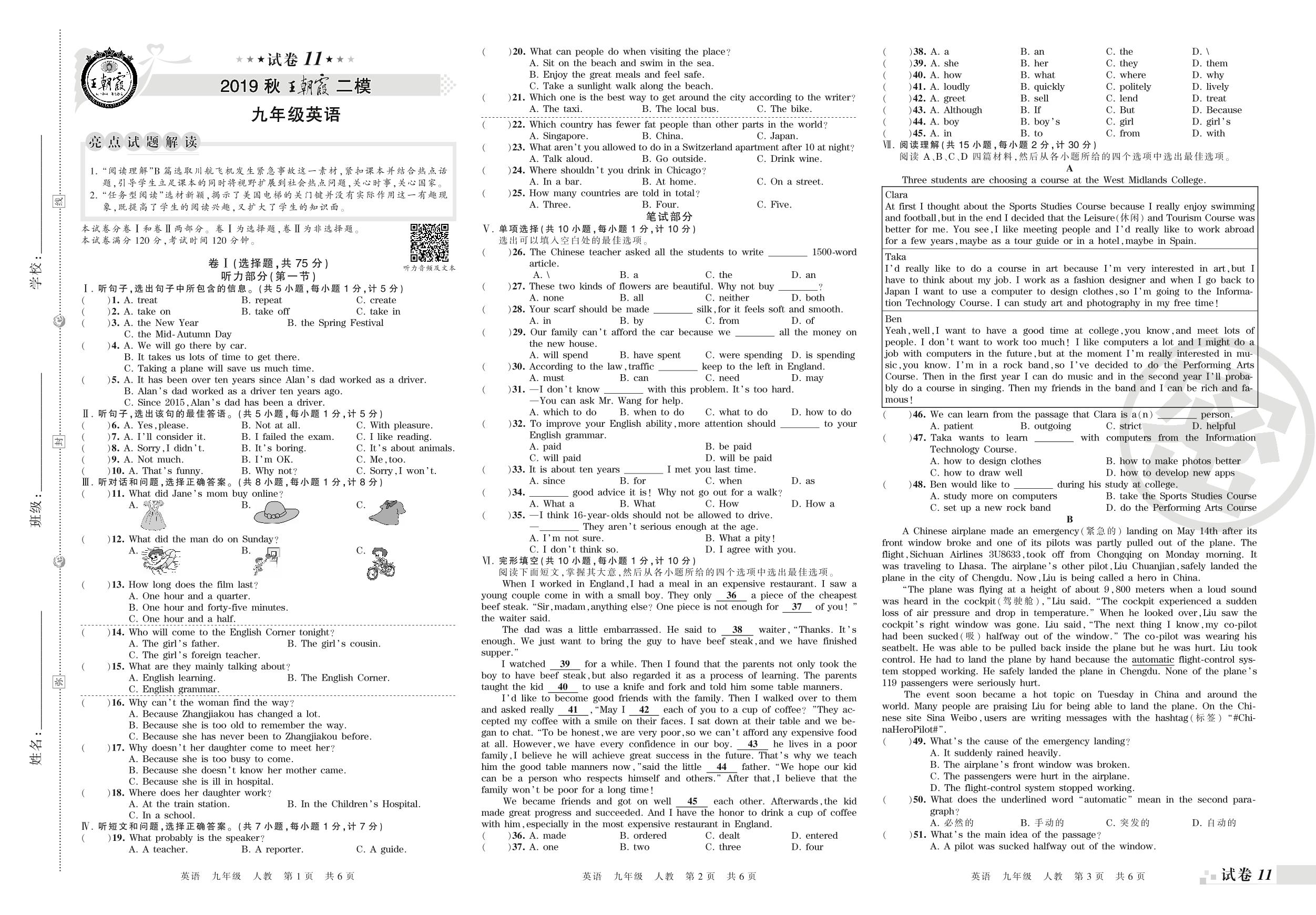 2019-2020学年第一学期王朝霞期末模拟卷九年级英语(人教版)_R210809151008【11】