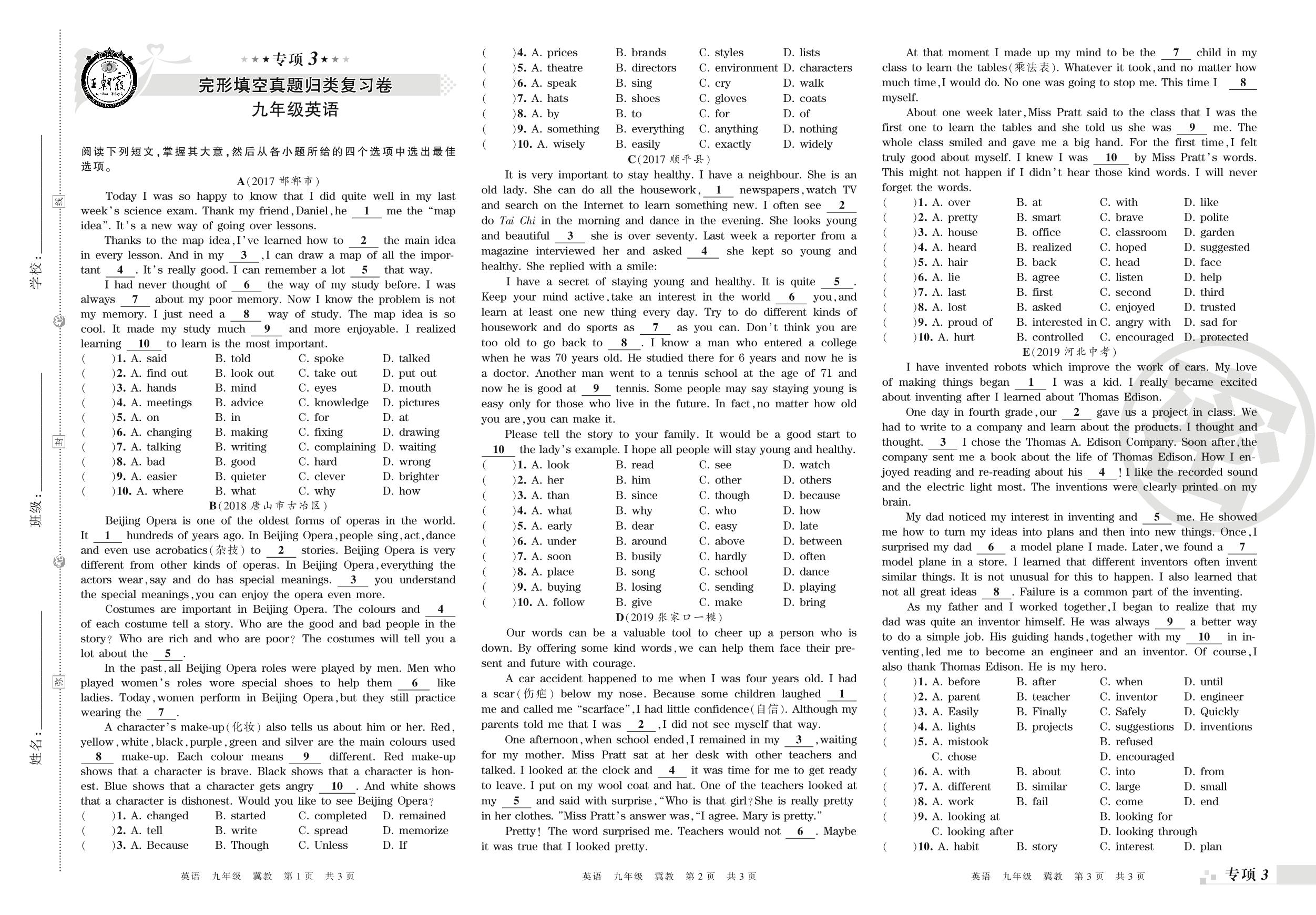 王朝霞期末专项卷——完形填空、阅读理解真题归类复习九年级上册英语(冀教版)_R210809151151【0】
