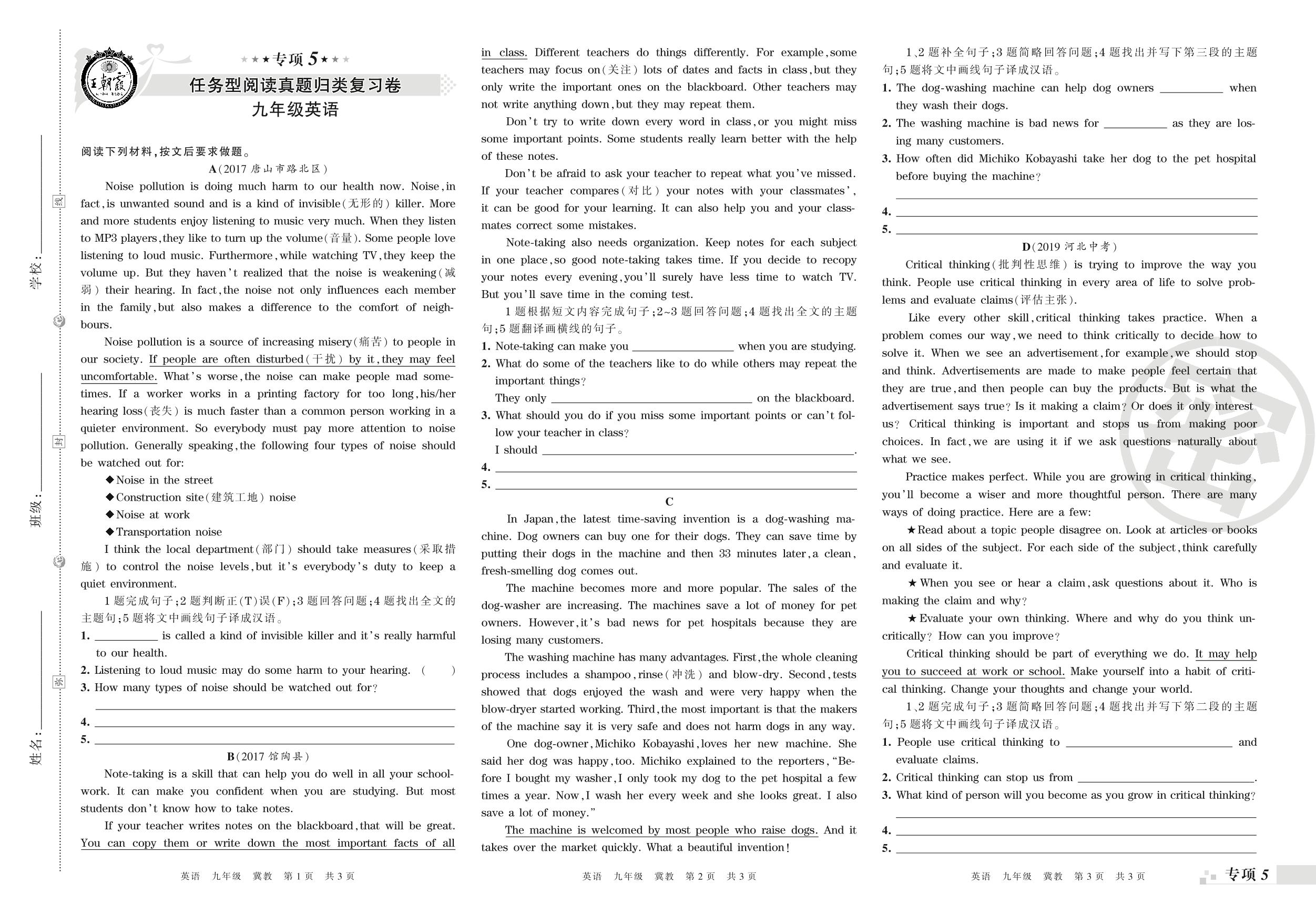 王朝霞期末专项卷——任务型阅读、词语运用真题归类复习九年级上册英语(冀教版)_R210809151159【0】