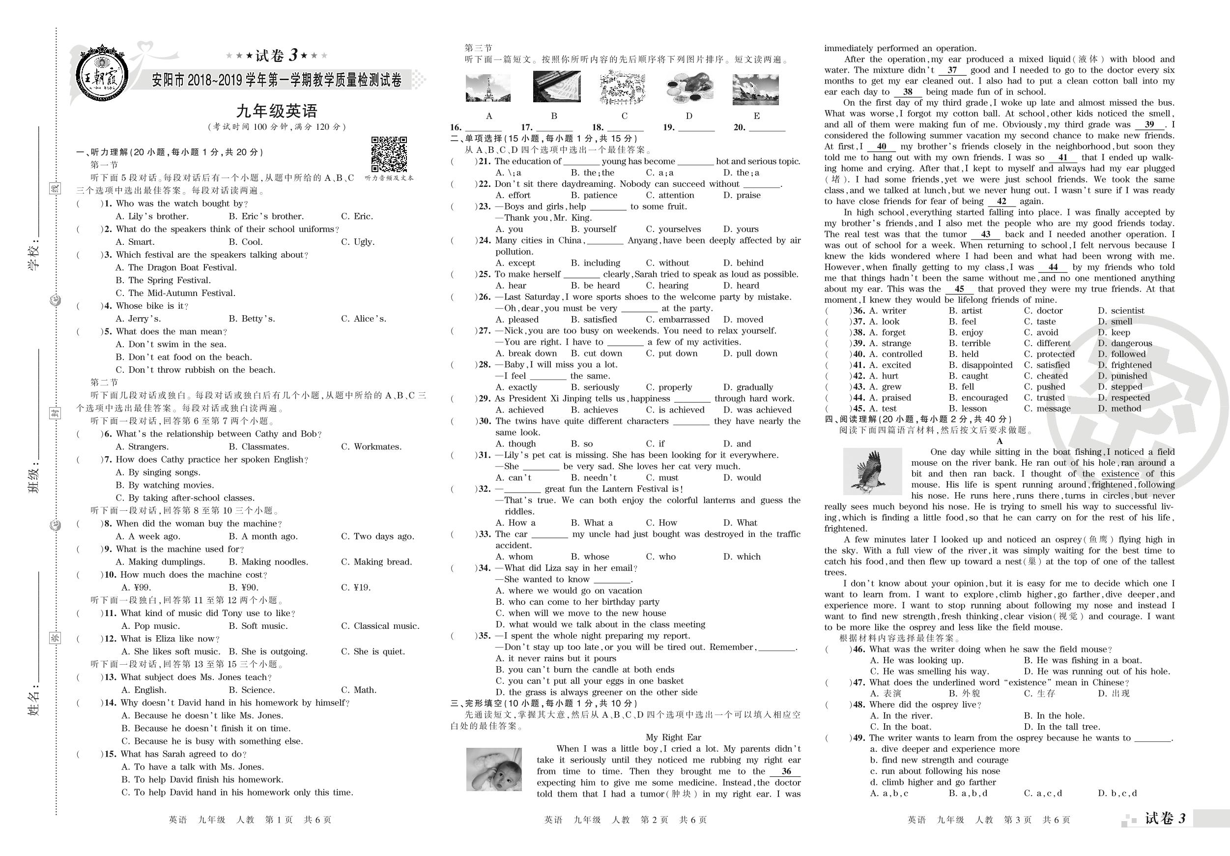 2018-2019学年第一学期安阳市九年级英语试卷(人教版)【3】