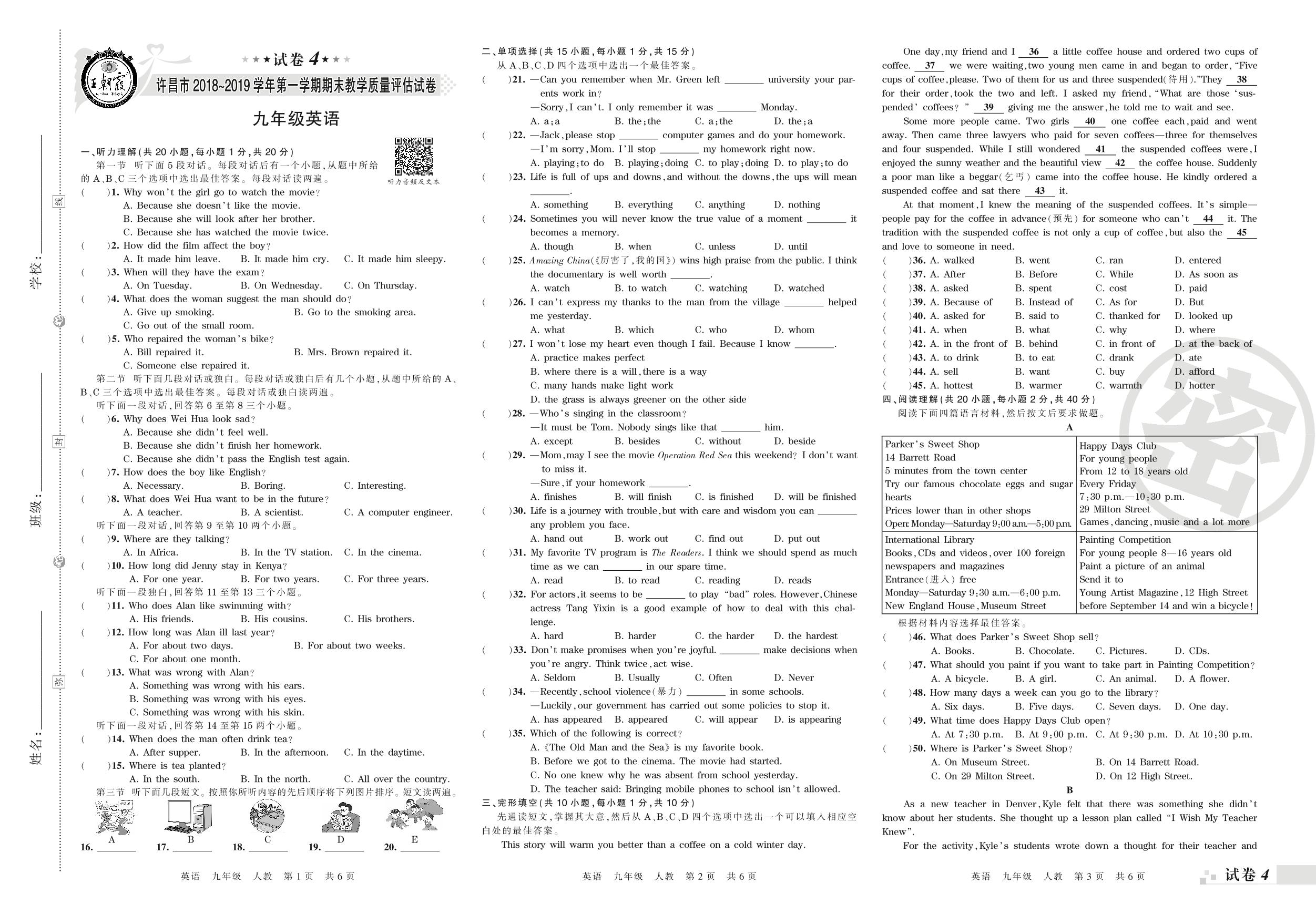2018-2019学年第一学期许昌市九年级英语试卷(人教版)【4】