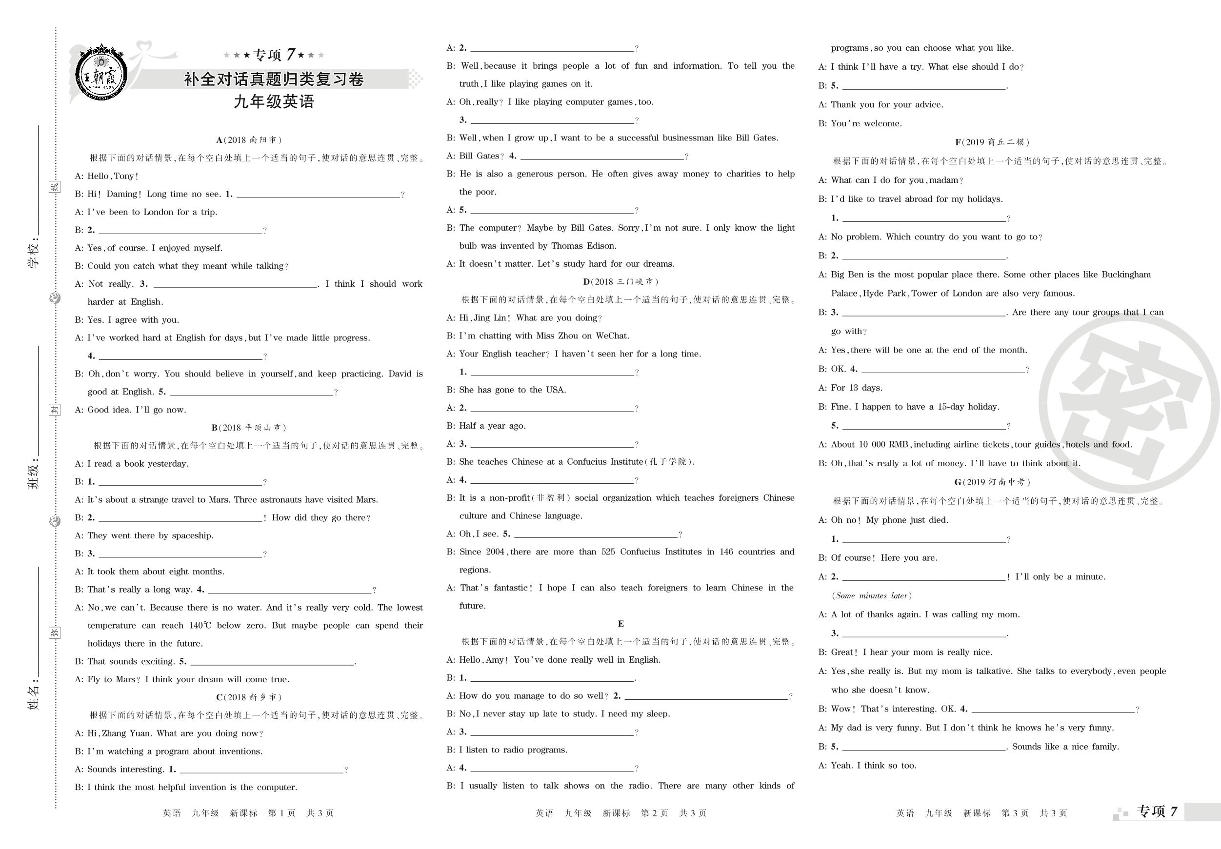 王朝霞期末专项卷——补全对话、书面表达真题归类复习九年级上册英语(新课版)_R210809151438【0】
