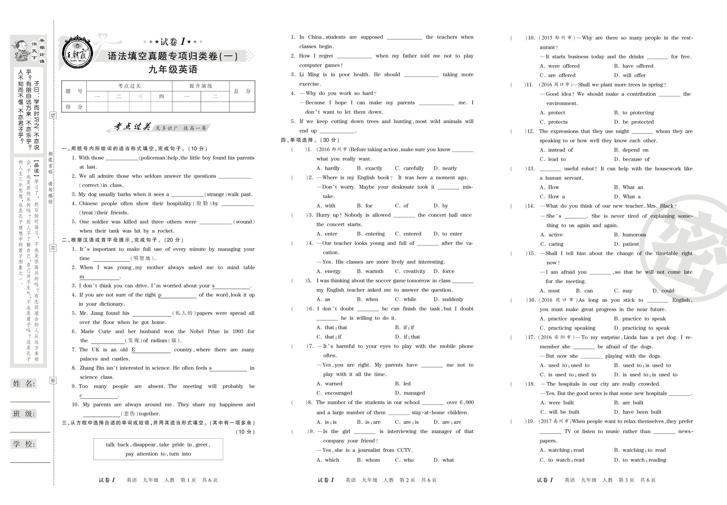 王朝霞期末专项卷九年级上册英语(人教版)【1】