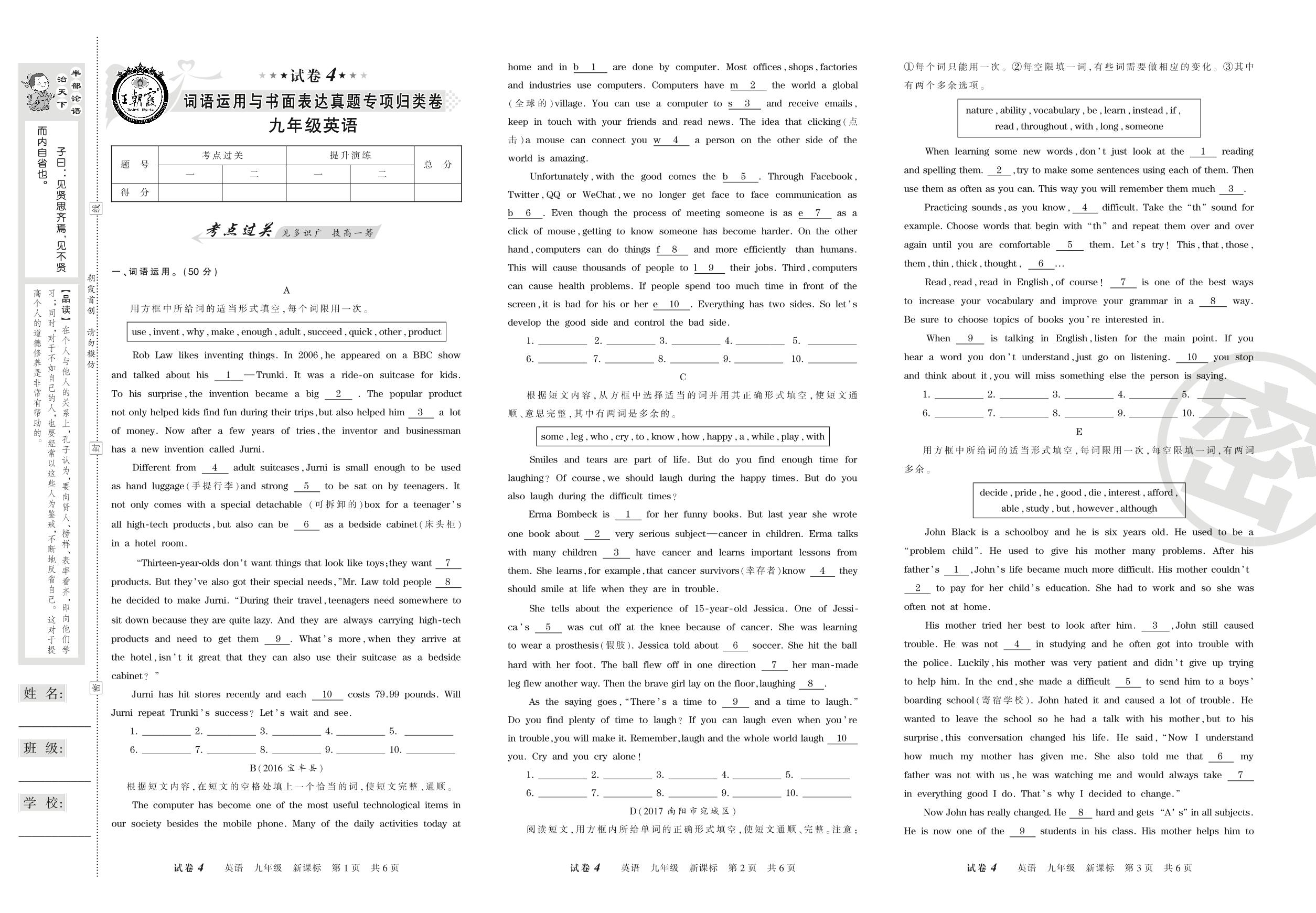 王朝霞期末专项卷九年级上册英语(新课版)【4】