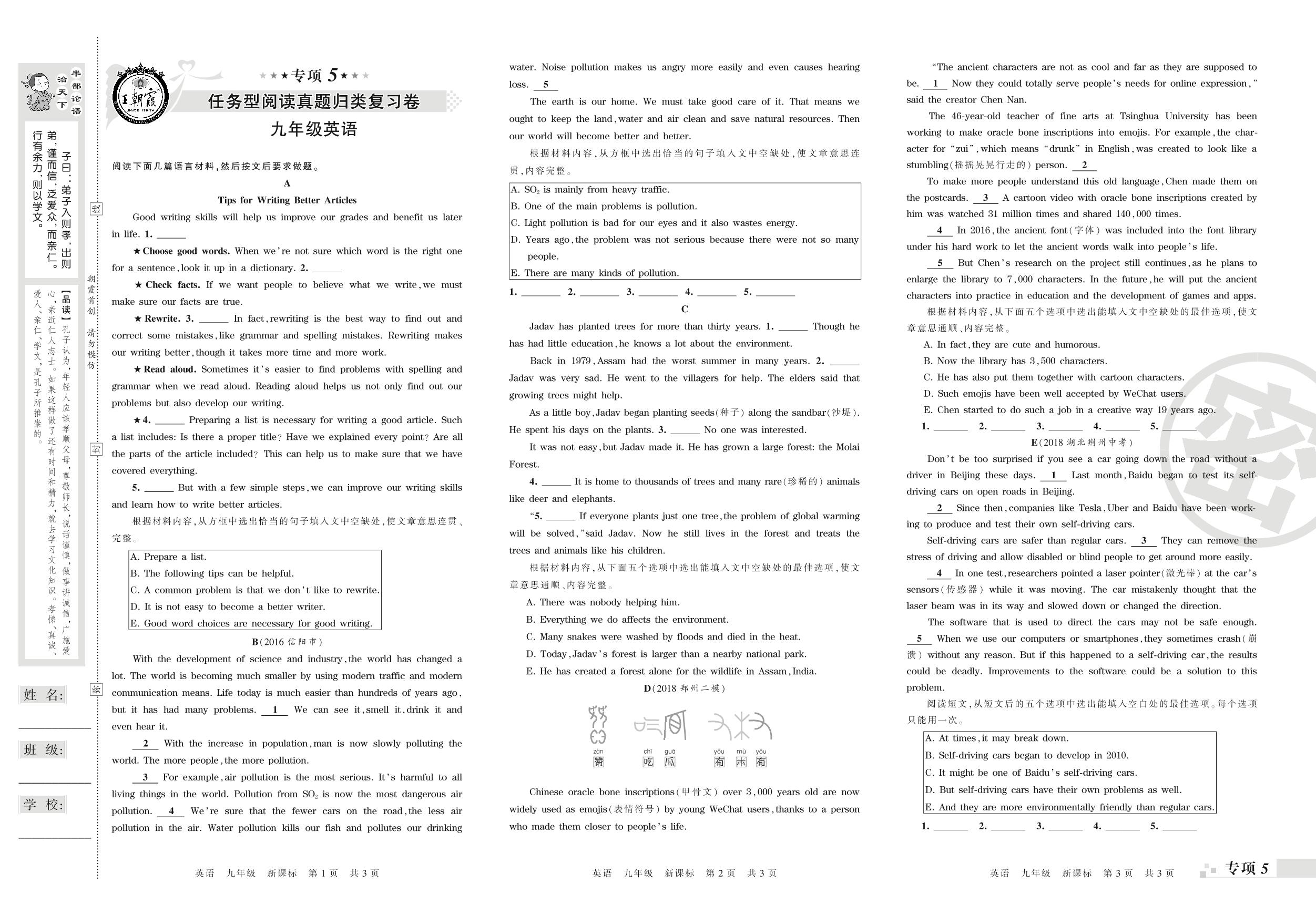 九年级英语新课标版上册专项卷