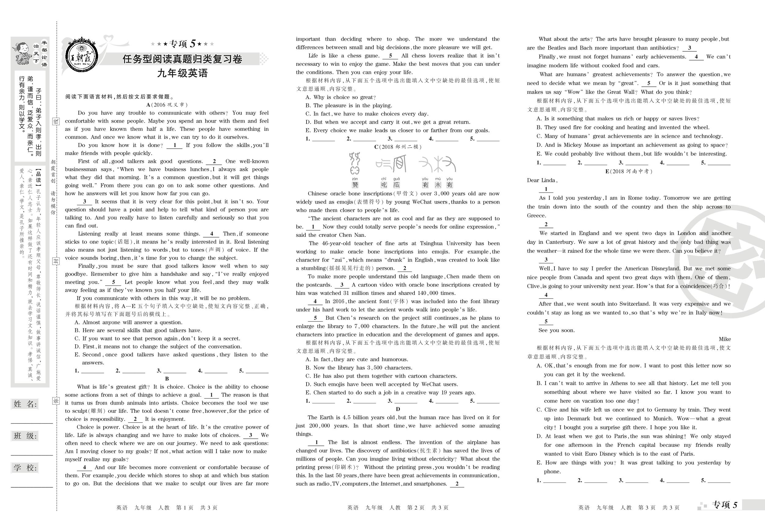 王朝霞期末专项卷——任务型阅读、词语运用真题归类复习卷九年级上册英语(人教版)_R21081091644【0】