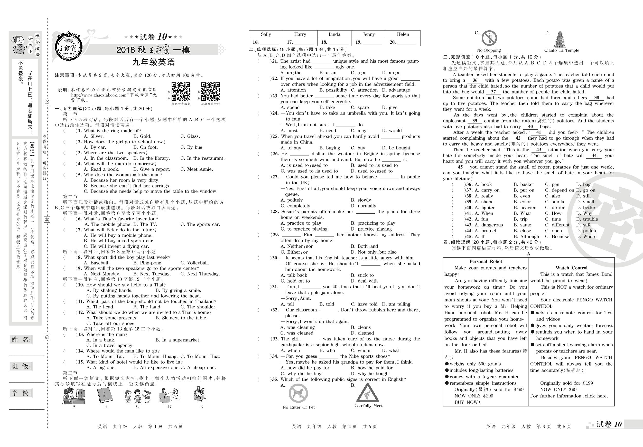 2018-2019学年第一学期王朝霞期末模拟卷九年级英语(人教版)_R21081091803【10】