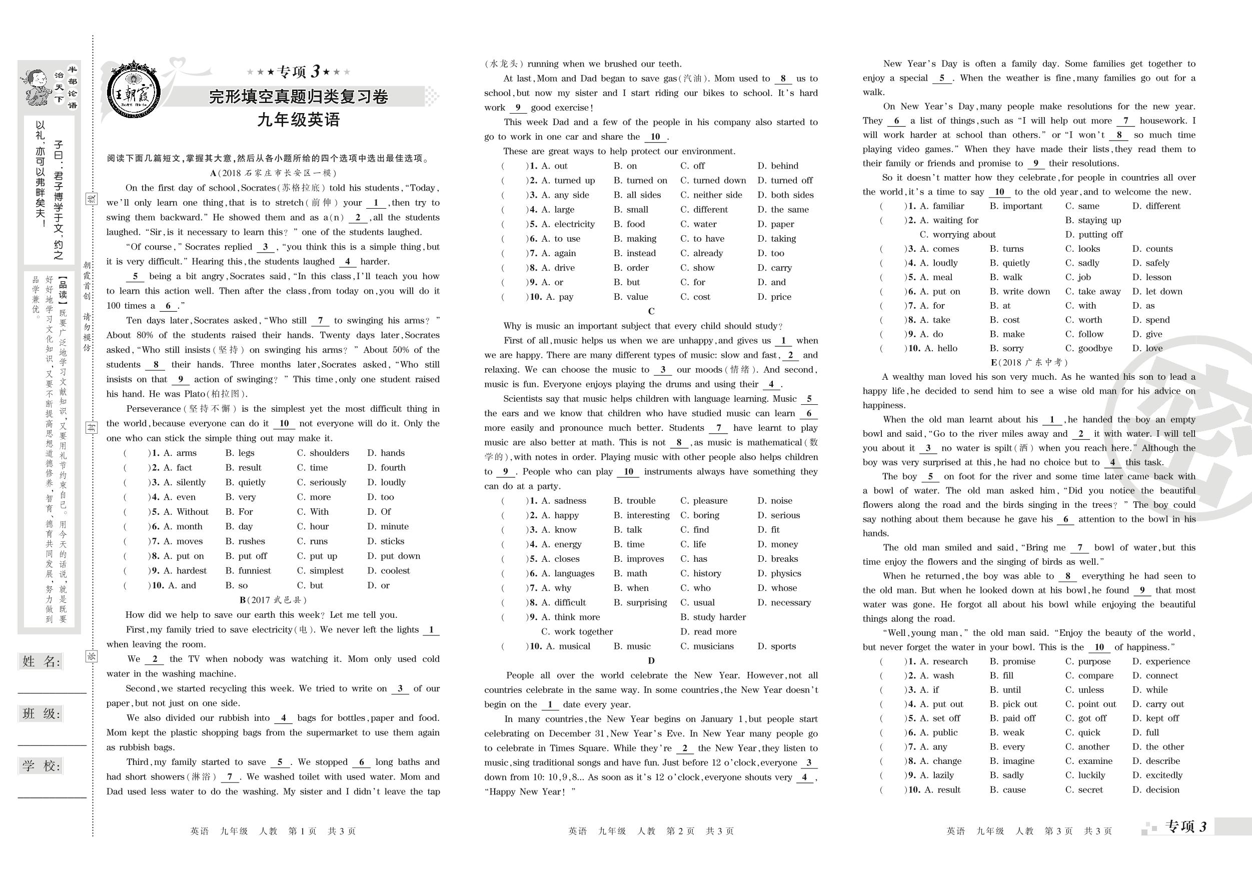王朝霞期末专项卷——完形填空、阅读理解真题归类复习卷九年级上册英语(人教版)_R21081091839【0】
