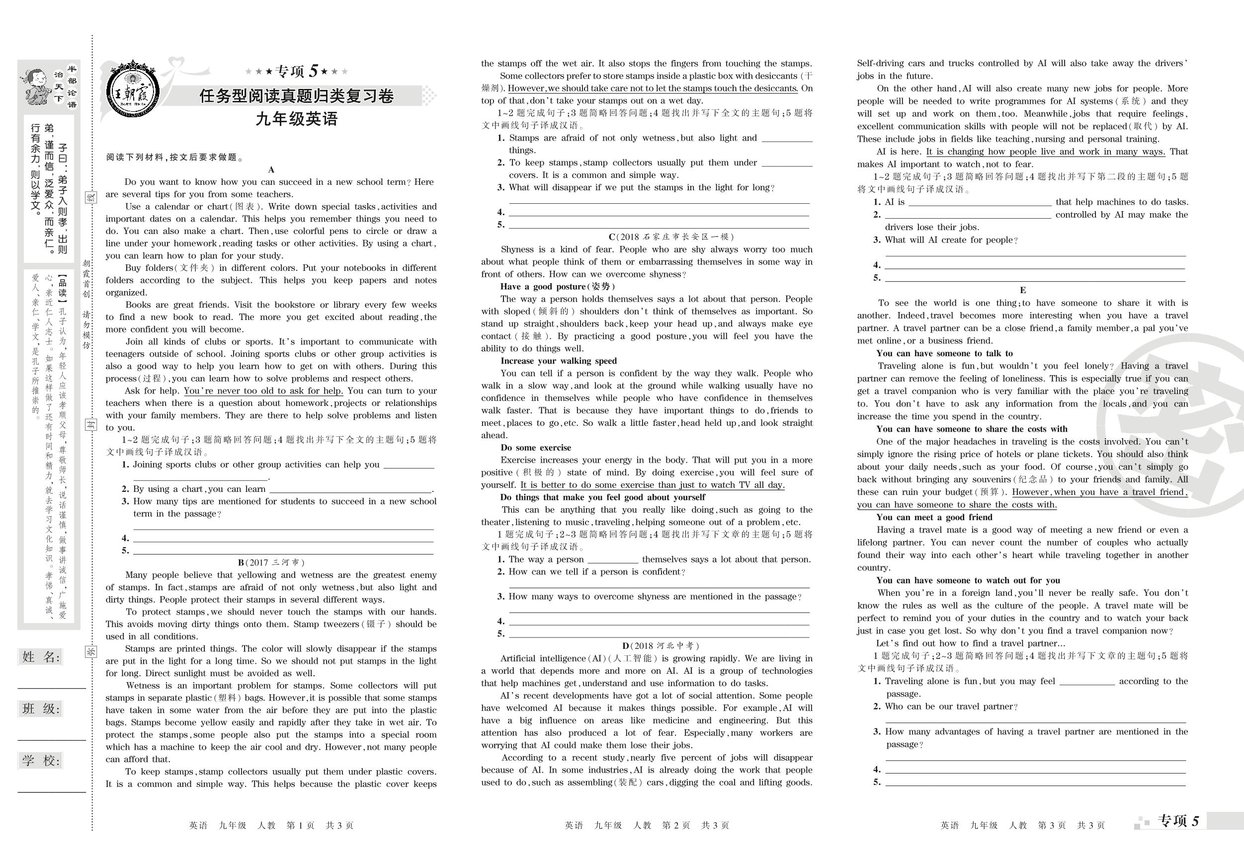 王朝霞期末专项卷——任务型阅读、词语运用真题归类复习卷九年级上册英语(人教版)_R21081091857【0】