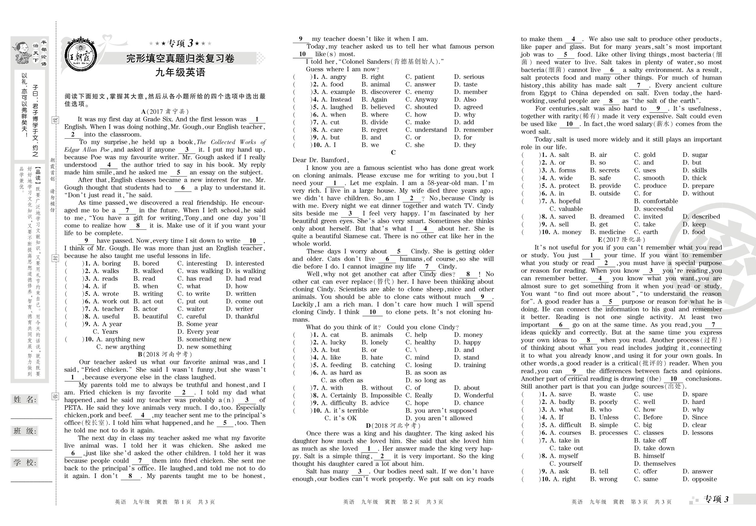王朝霞期末专项卷——完形填空、阅读理解真题归类复习卷九年级上册英语(冀教版)_R21081092318【0】