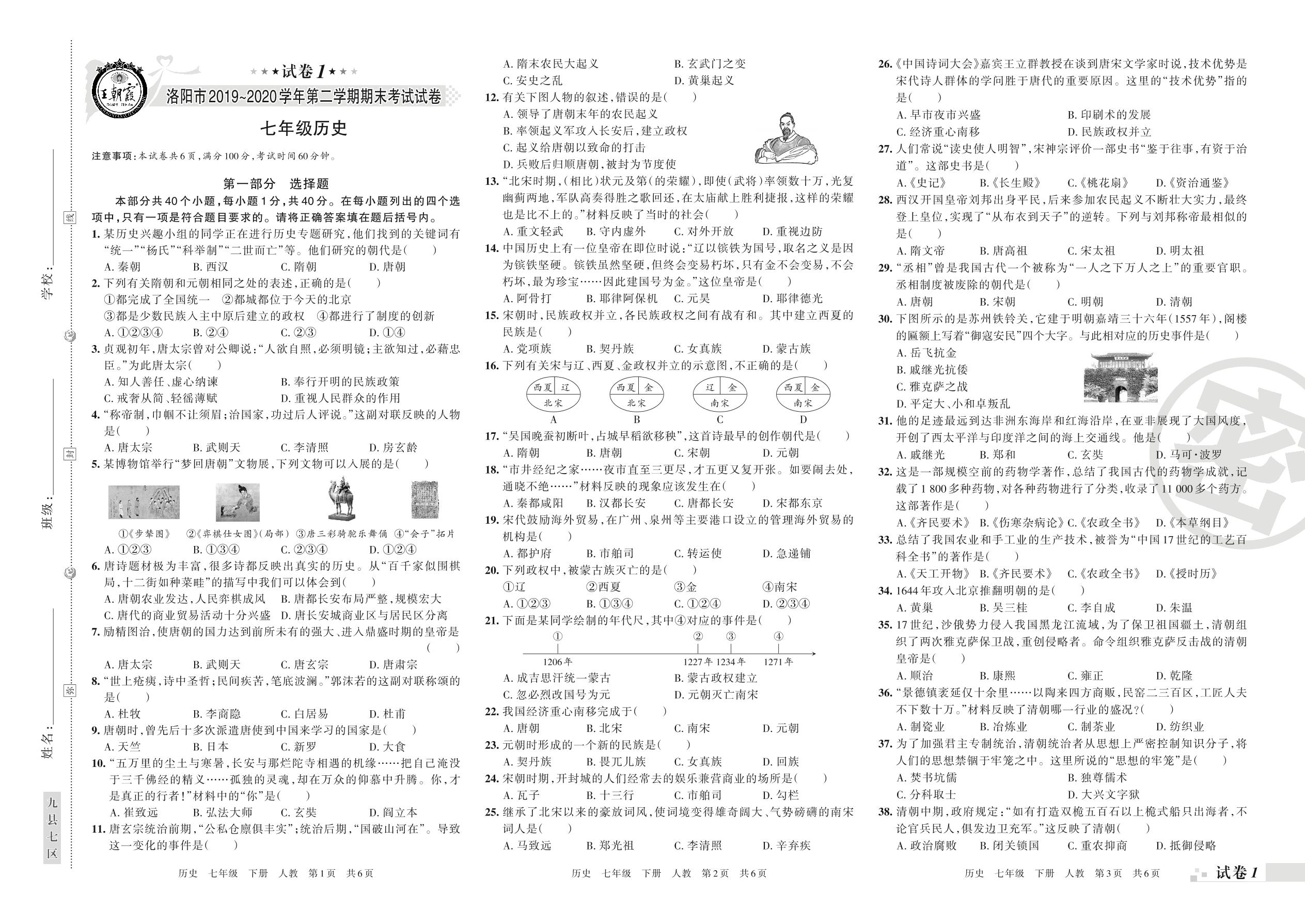 2019-2020学年第二学期洛阳市七年级历史试卷(人教版)【1】