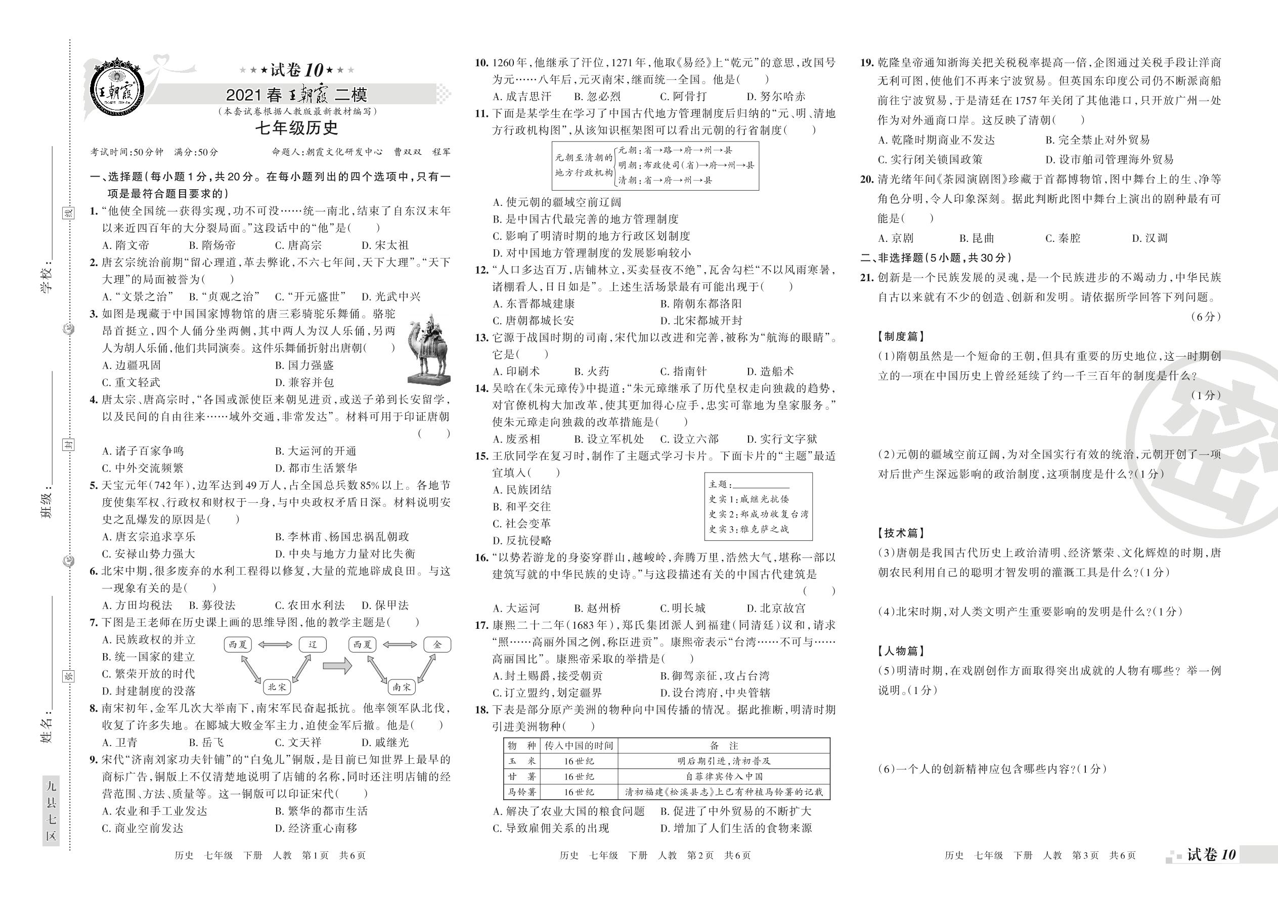 王朝霞期末模拟卷七年级下册历史(人教版)_R210810100201【10】