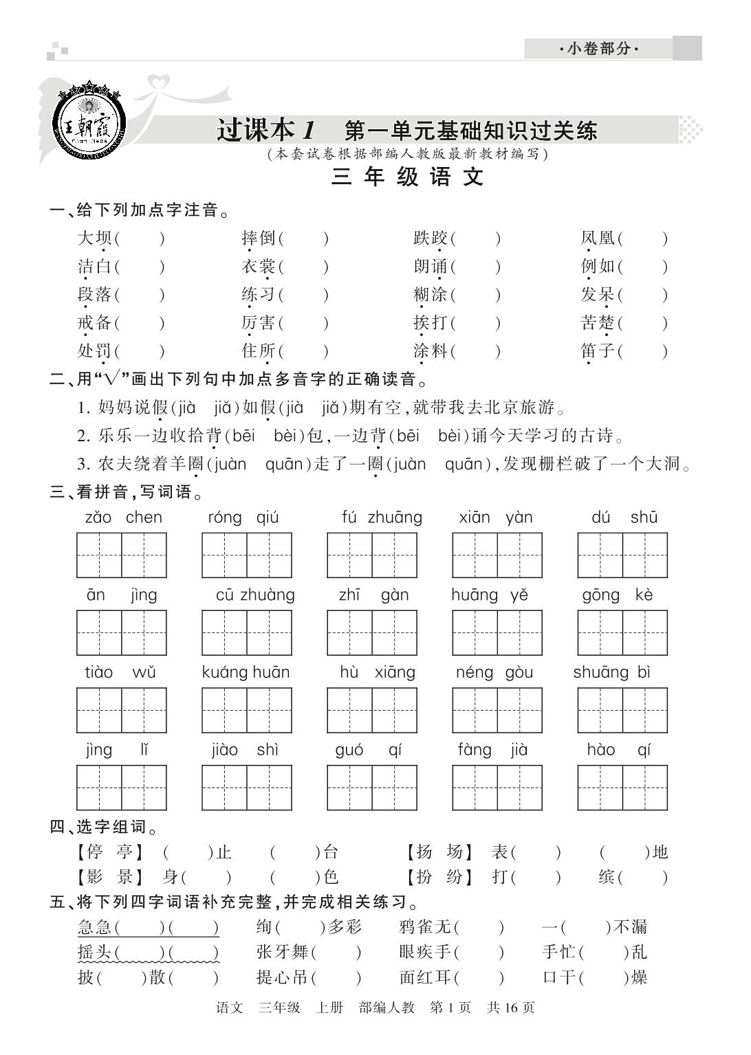王朝霞期末过课本——基础知识过关练三年级上册语文(人教版)_R21080192212【0】