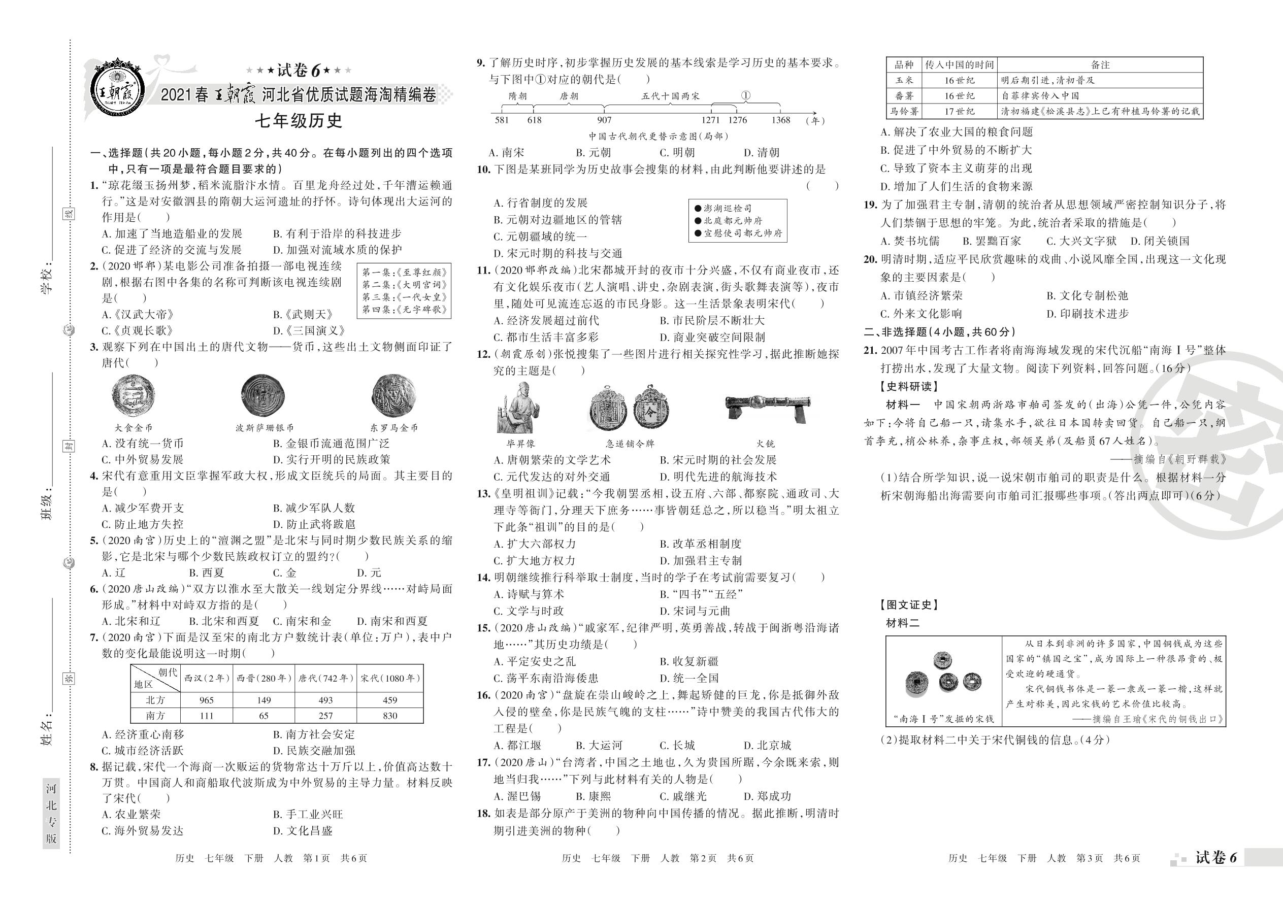 王朝霞海淘期末精编卷七年级下册历史(人教版)【6】