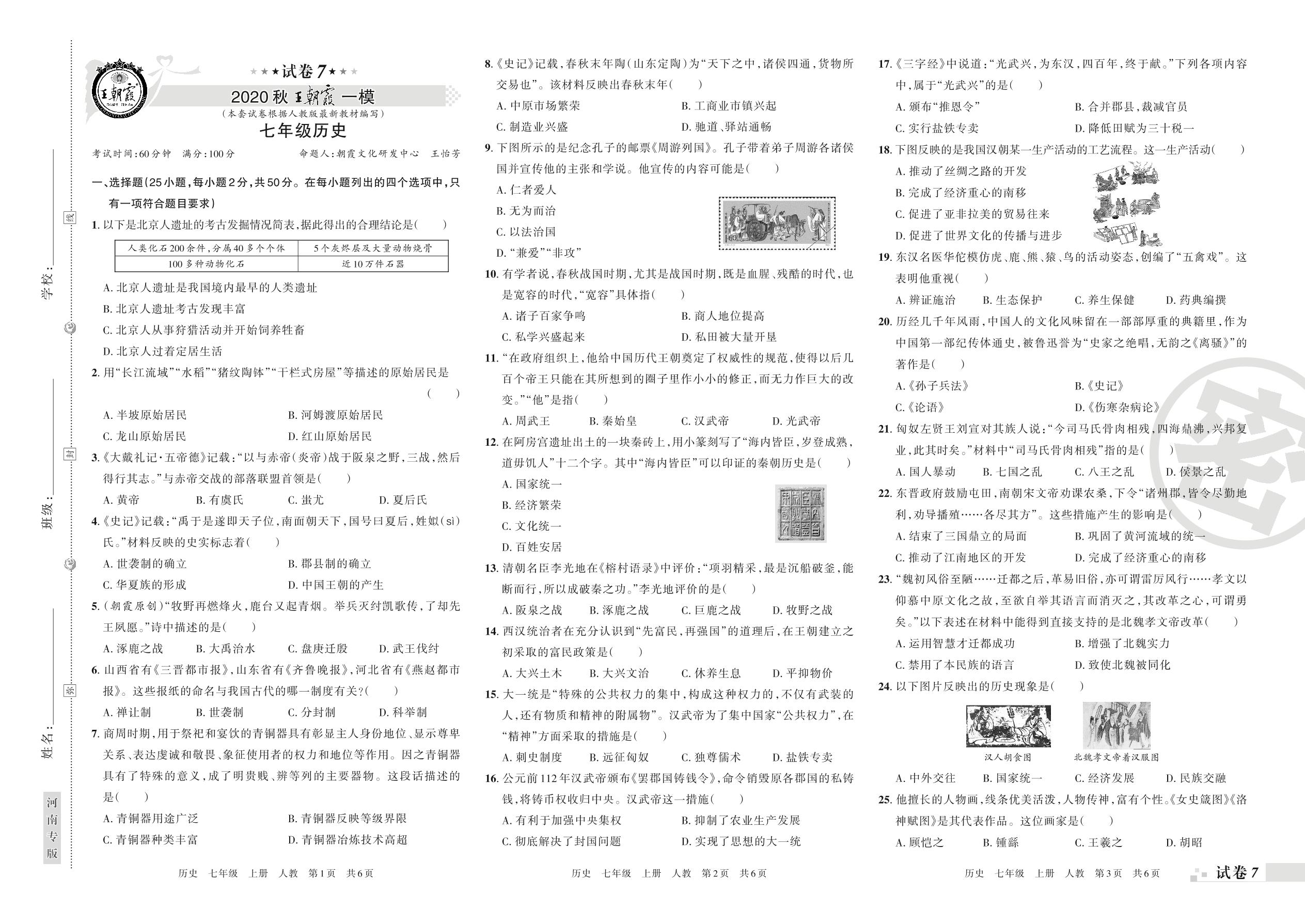 王朝霞期末模拟卷七年级上册历史(人教版)_R210810100757【7】