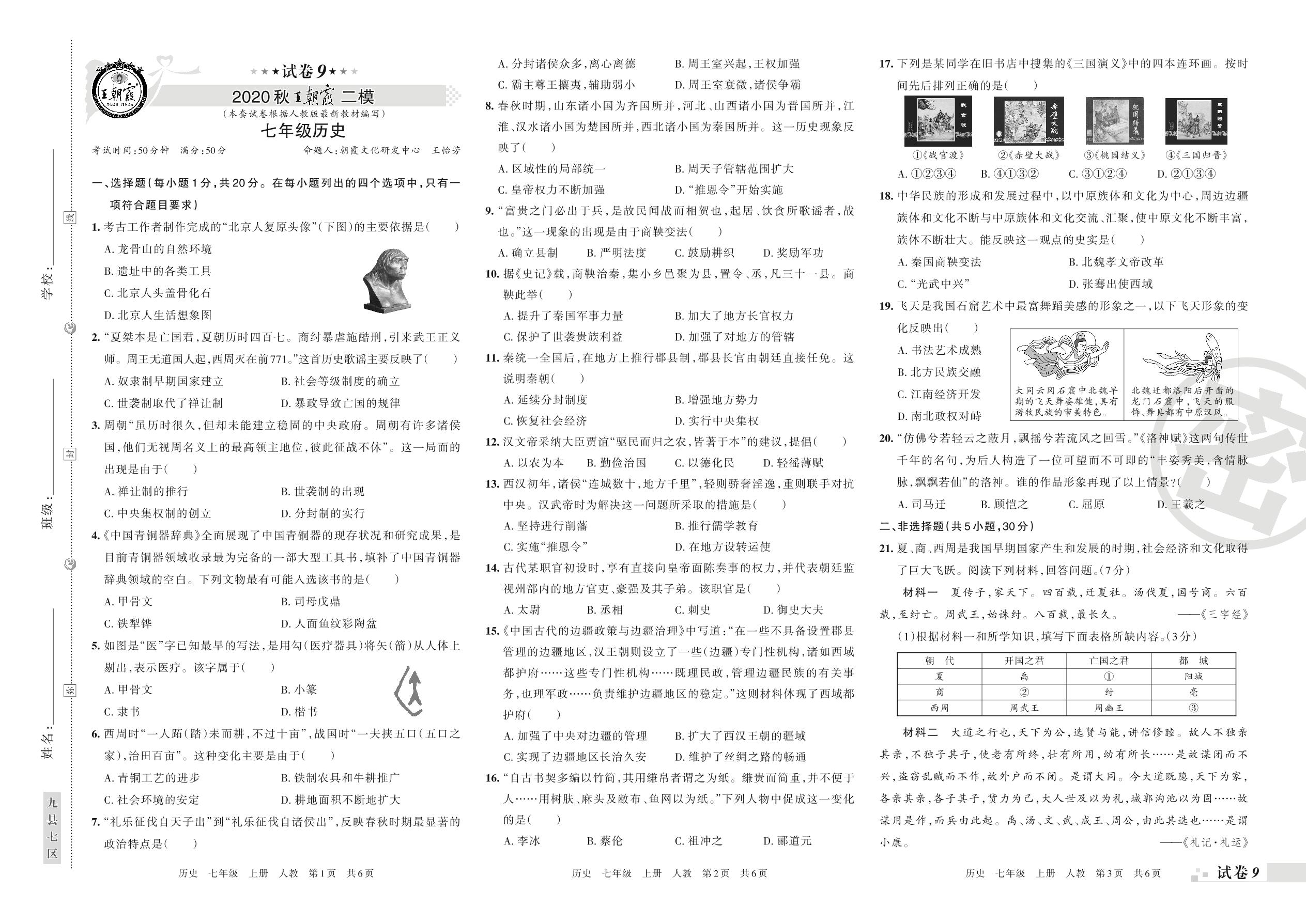 王朝霞期末模拟卷七年级上册历史(人教版)【9】