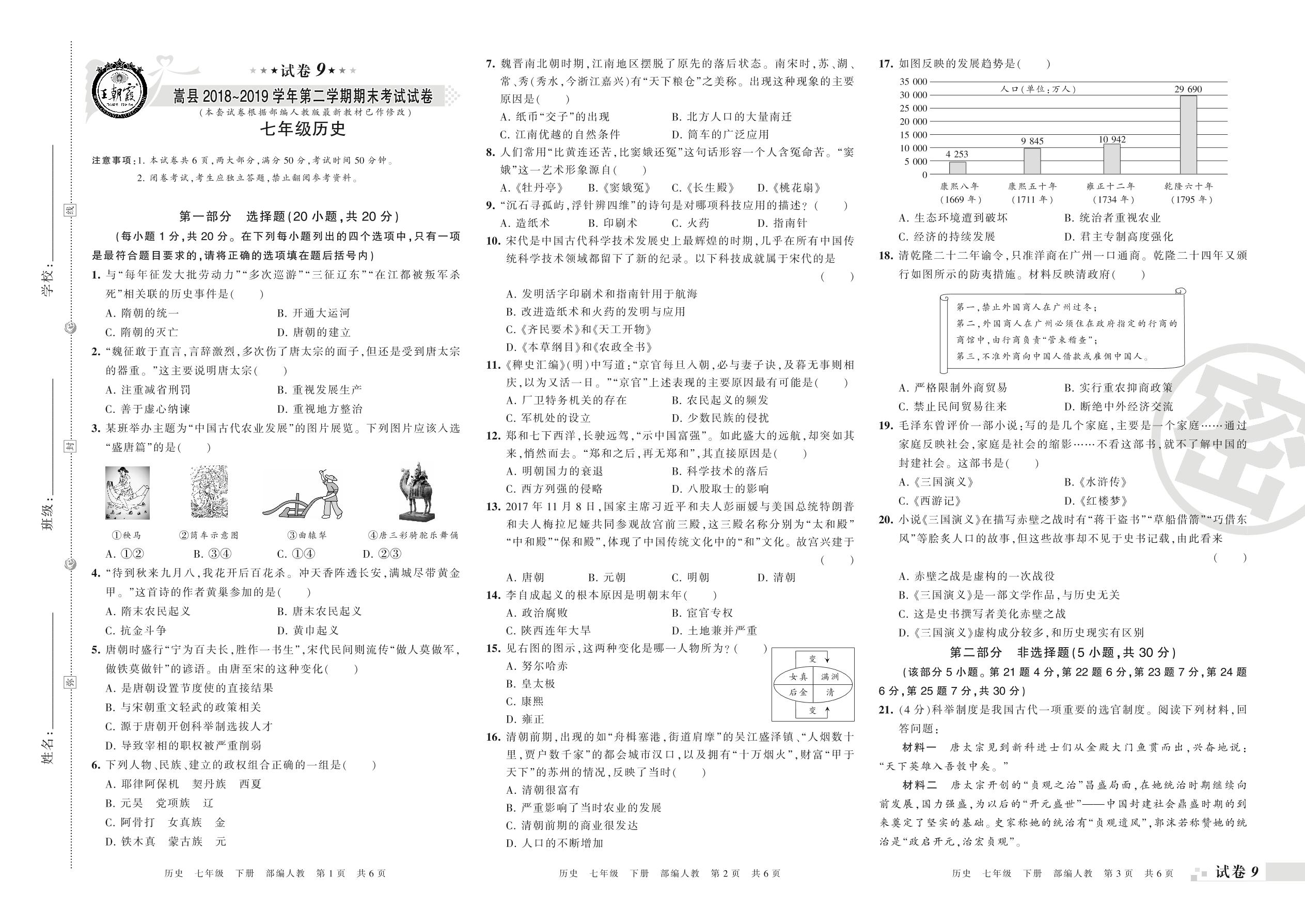 2018-2019学年第二学期洛阳市嵩县七年级历史试卷(人教版)【9】