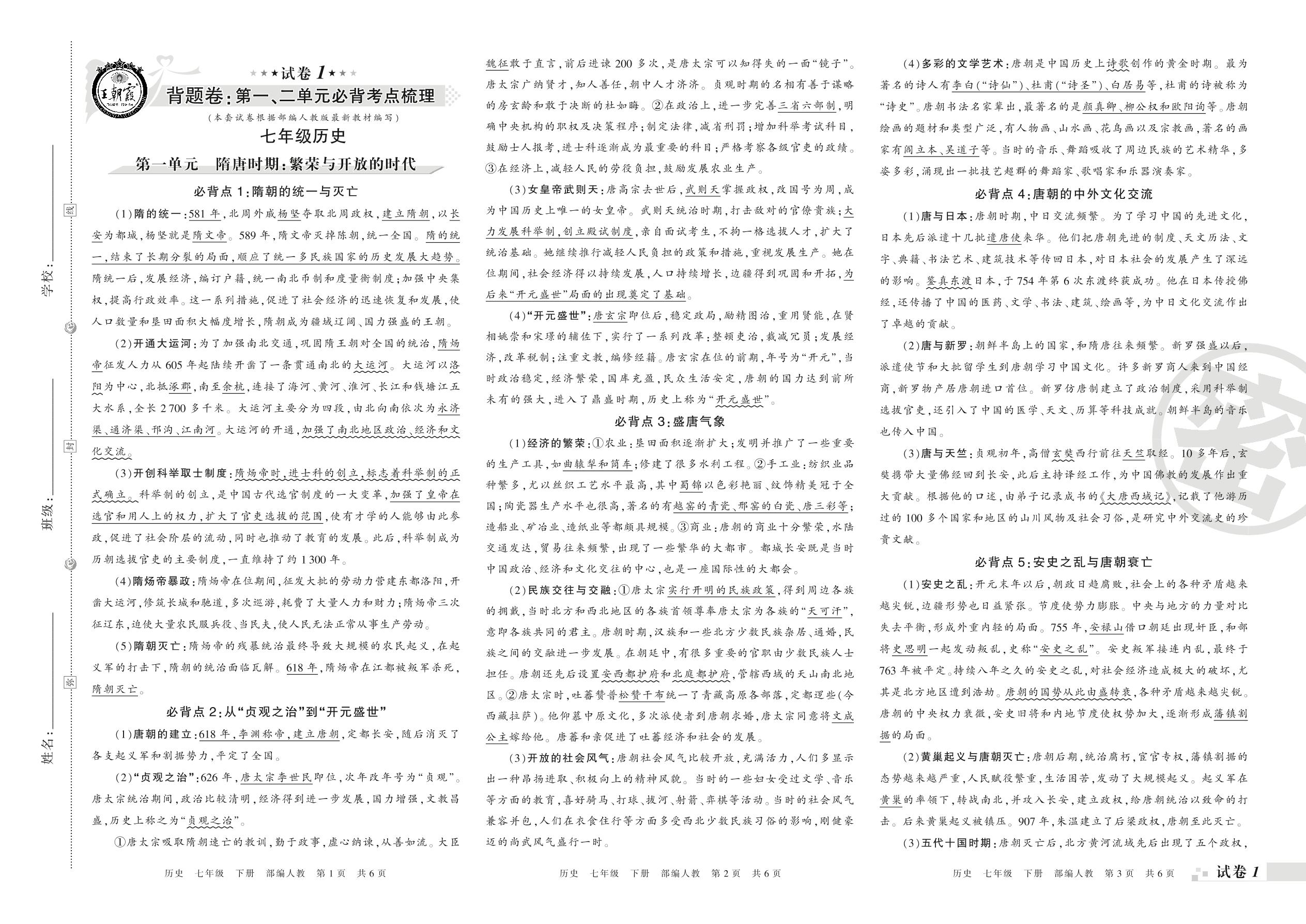 王朝霞期末背题卷——第一、二单元必背考点梳理七年级下册历史(人教版)_R210810101714【1】