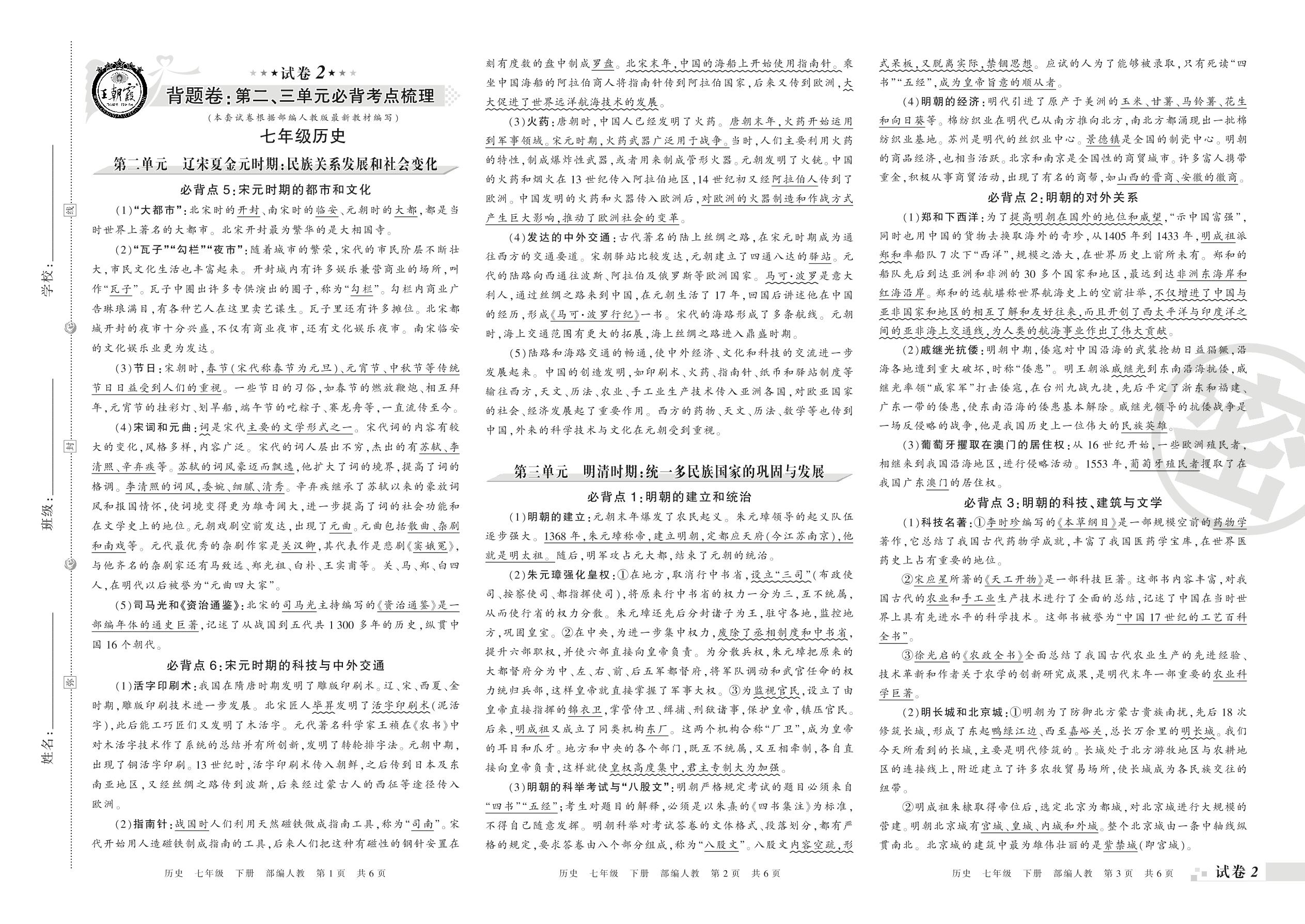 王朝霞期末背题卷——第二、三单元必背考点梳理七年级下册历史(人教版)_R210810101726【2】