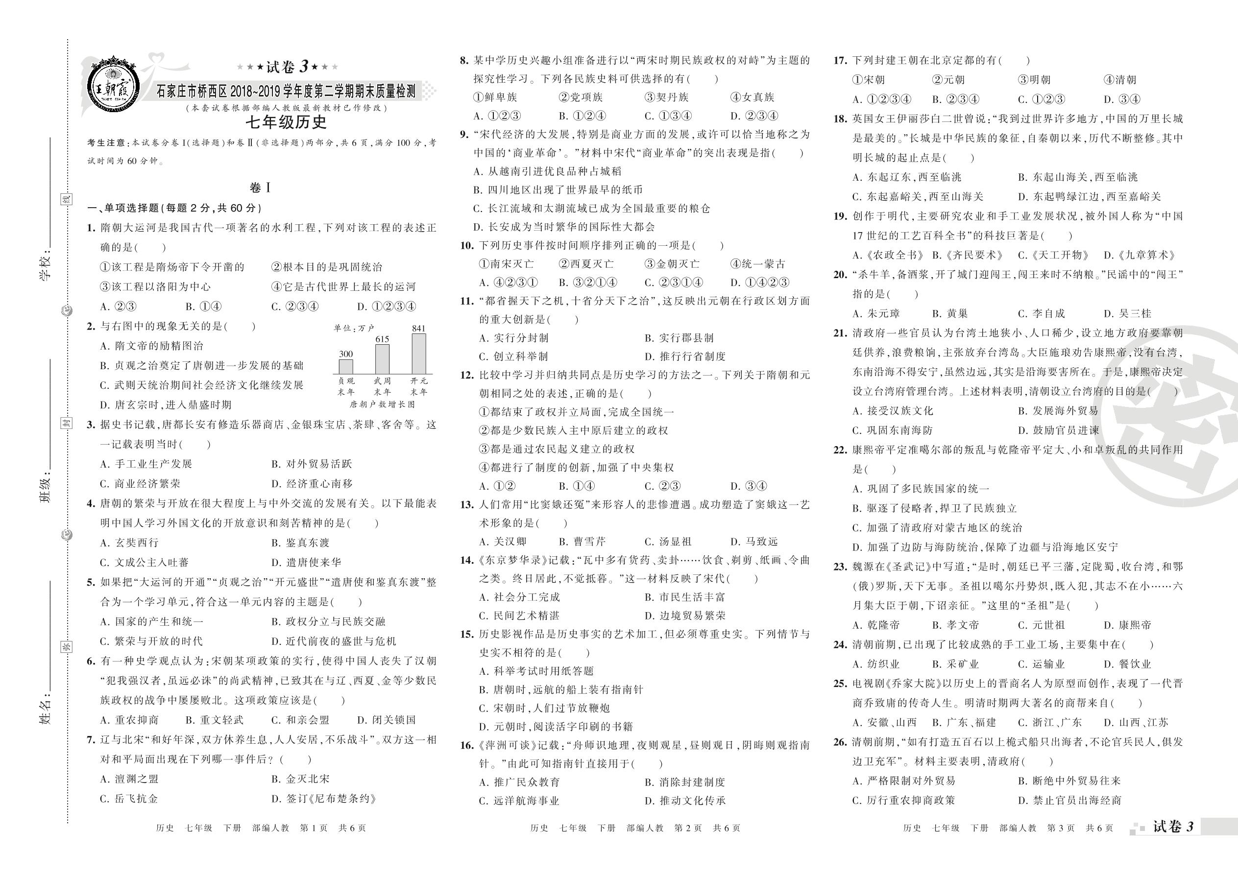 2018-2019学年第二学期石家庄市桥西区七年级历史试卷(人教版)【3】
