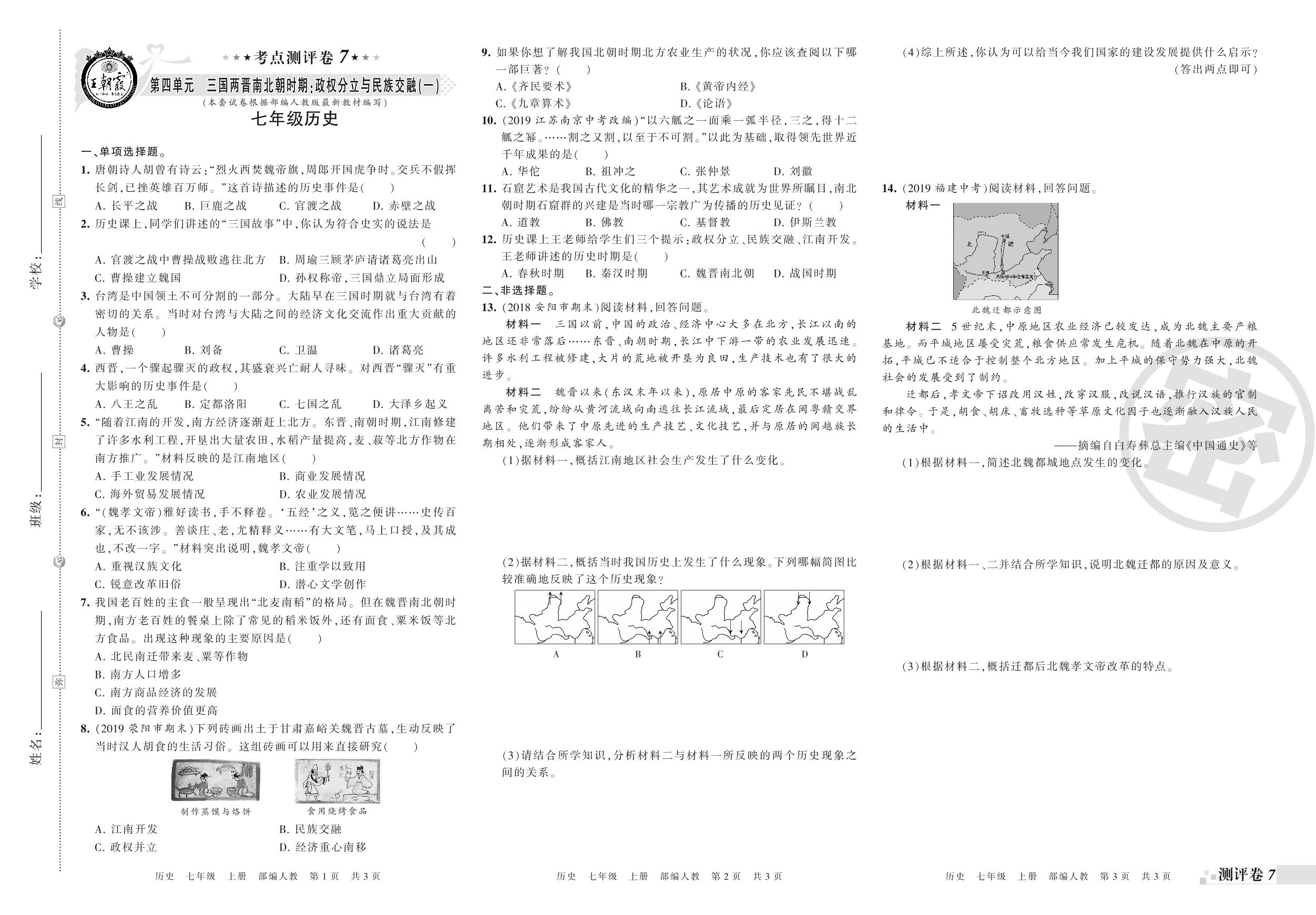 王朝霞期末测评卷——第四单元七年级上册历史(人教版)【0】