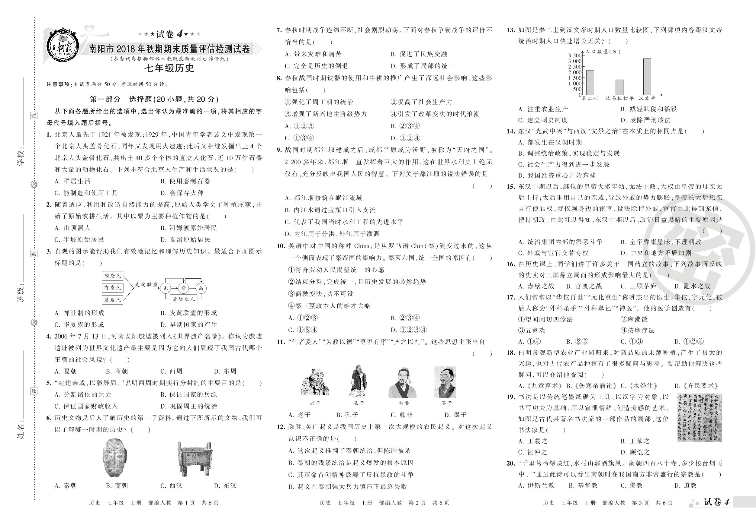 2018-2019学年第一学期南阳市七年级历史试卷(人教版)【4】