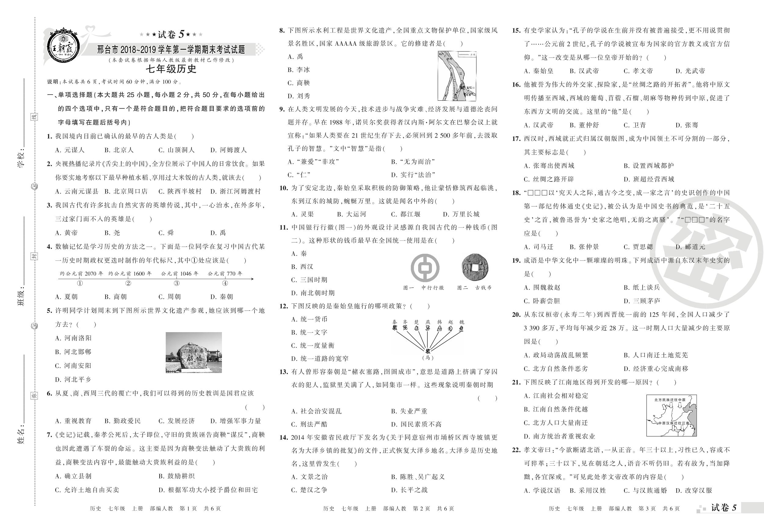 2018-2019学年第一学期邢台市七年级历史试卷(人教版)【5】