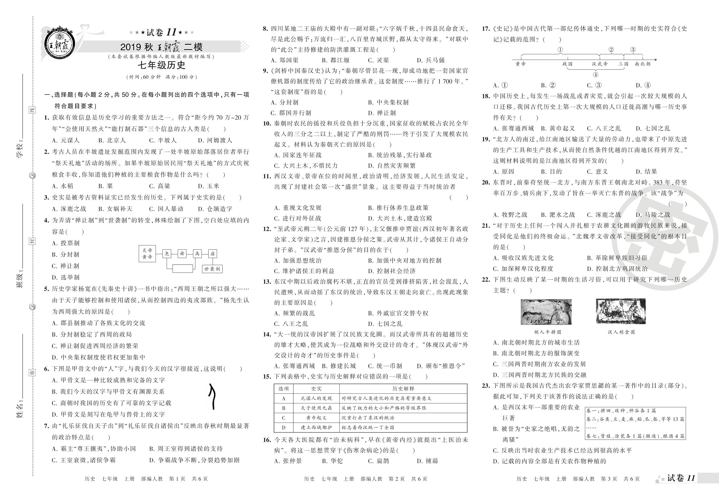 王朝霞期末模拟卷七年级上册历史(人教版)_R210810102725【11】