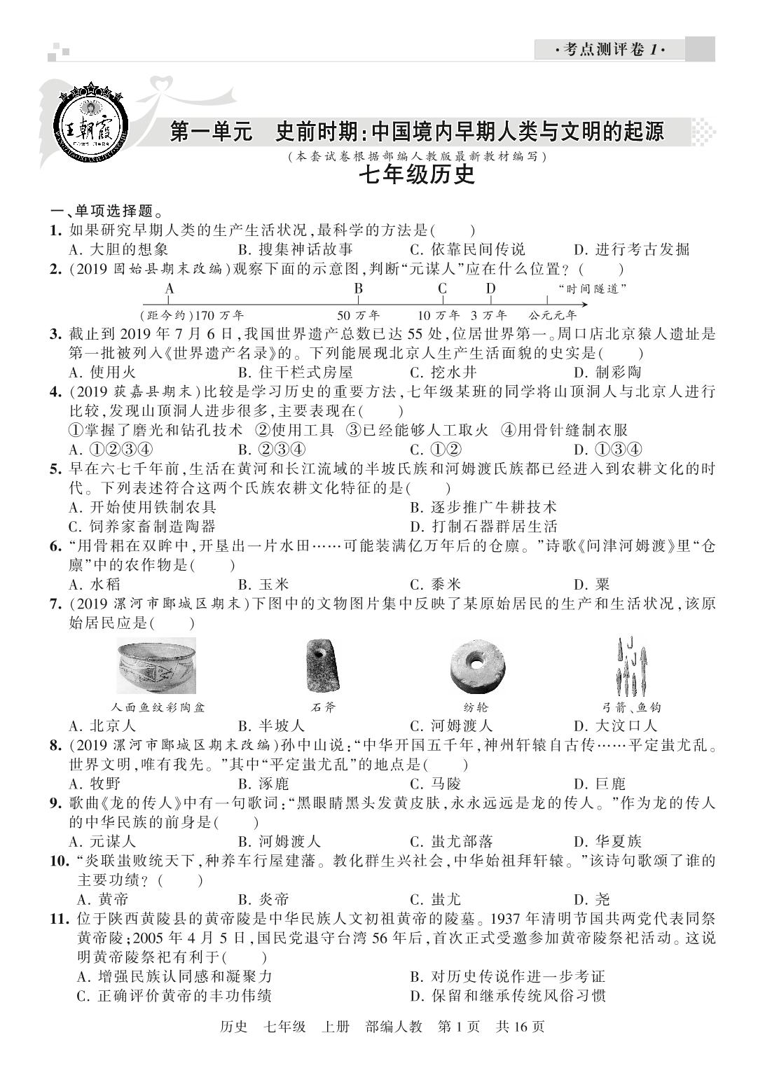 王朝霞期末小卷——考点测评卷七年级上册历史(人教版)【0】