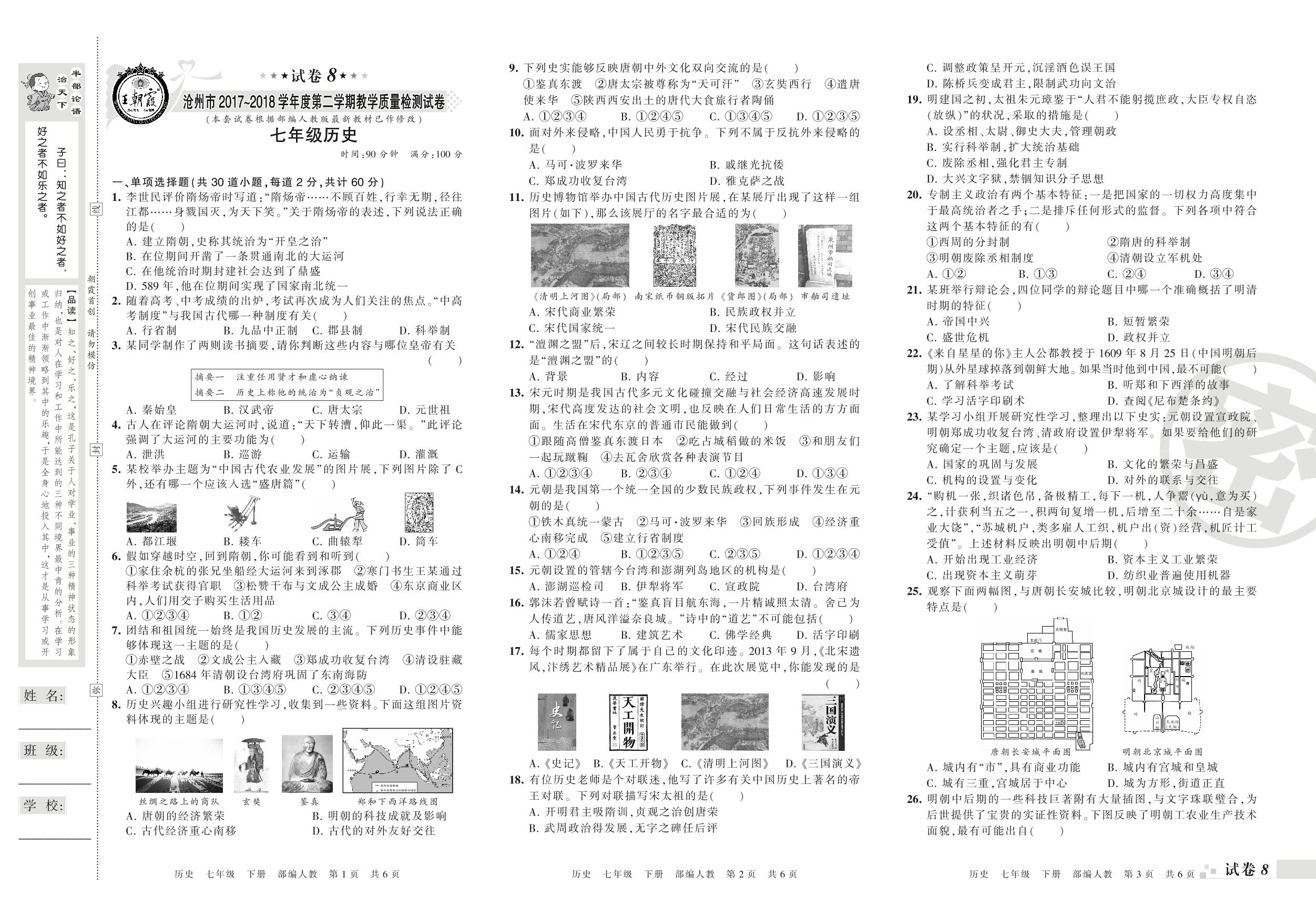 2017-2018学年第二学期沧州市七年级历史试卷(人教版)【8】