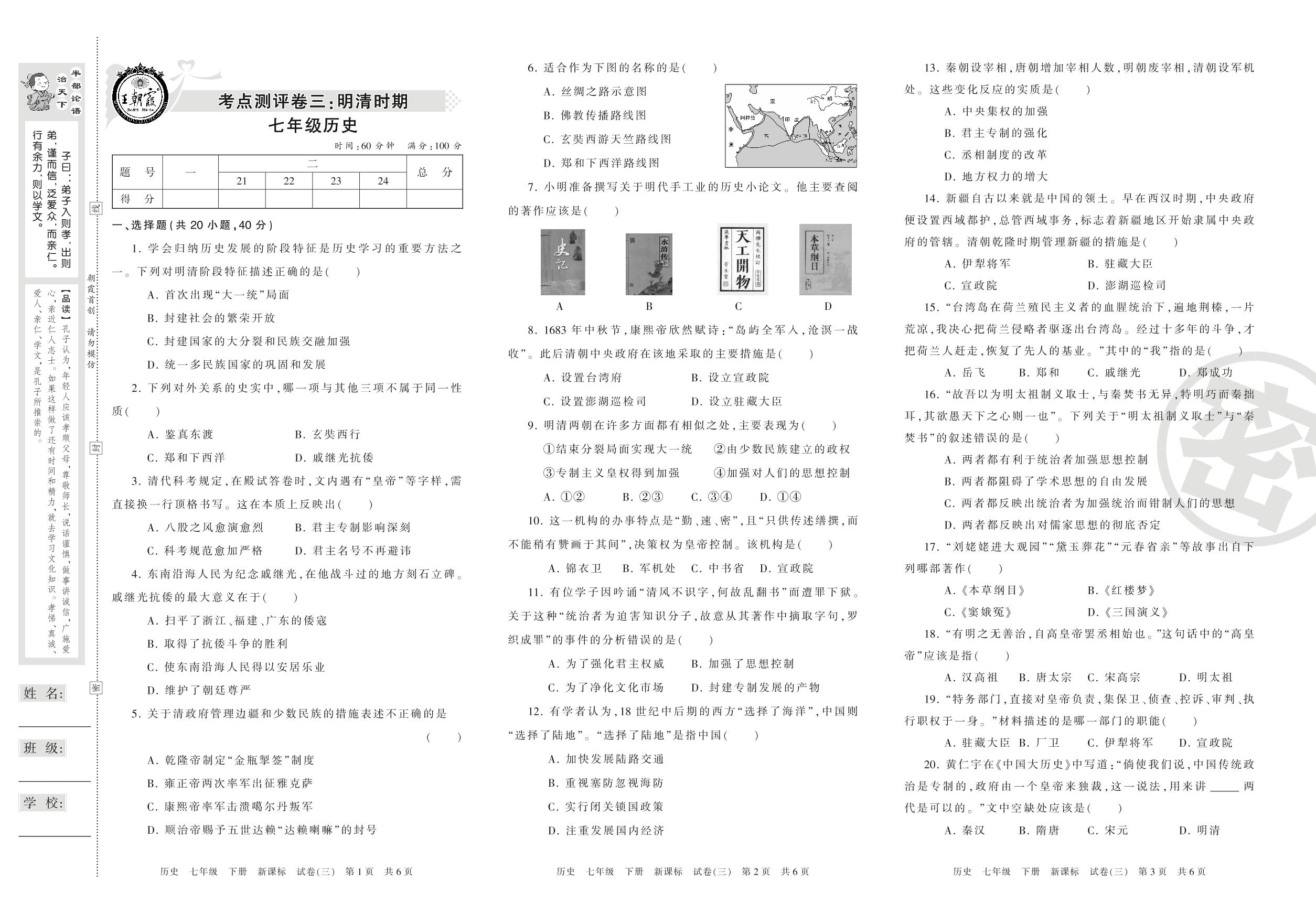 王朝霞期末测评卷七年级下册历史(新课版)【3】