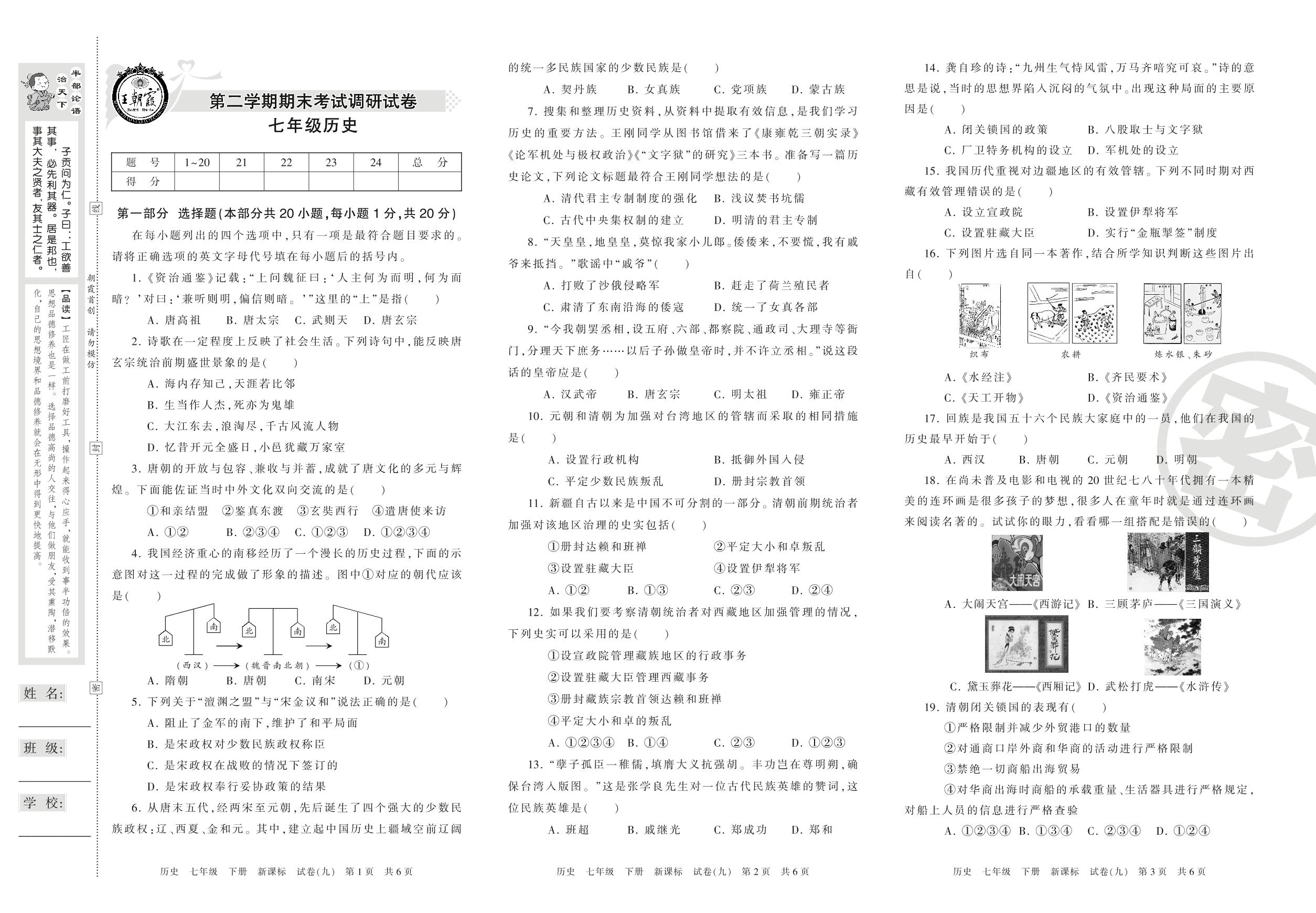 王朝霞期末调研卷七年级下册历史(新课版)【9】