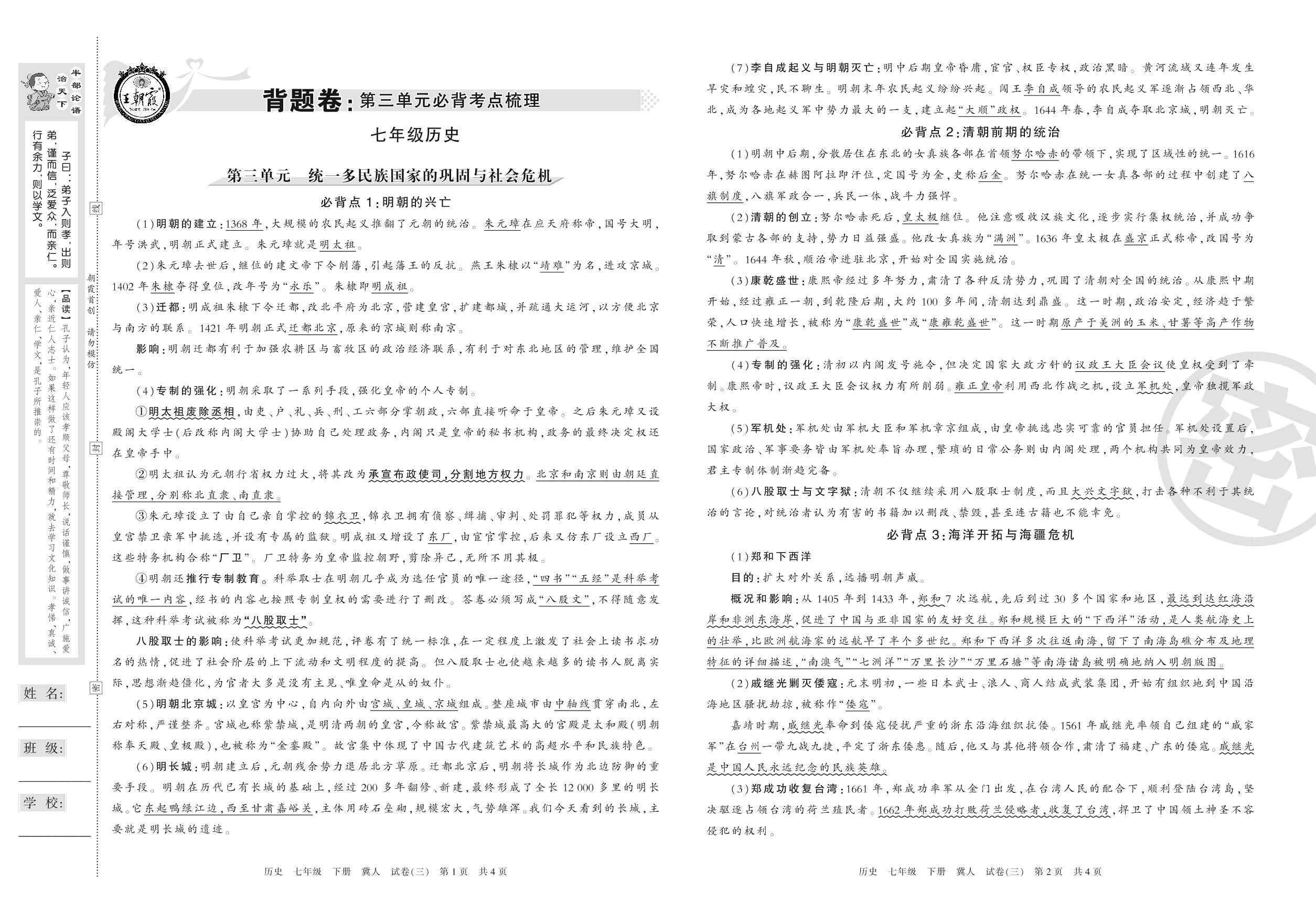 王朝霞期末背题卷七年级下册历史(冀人版)【3】