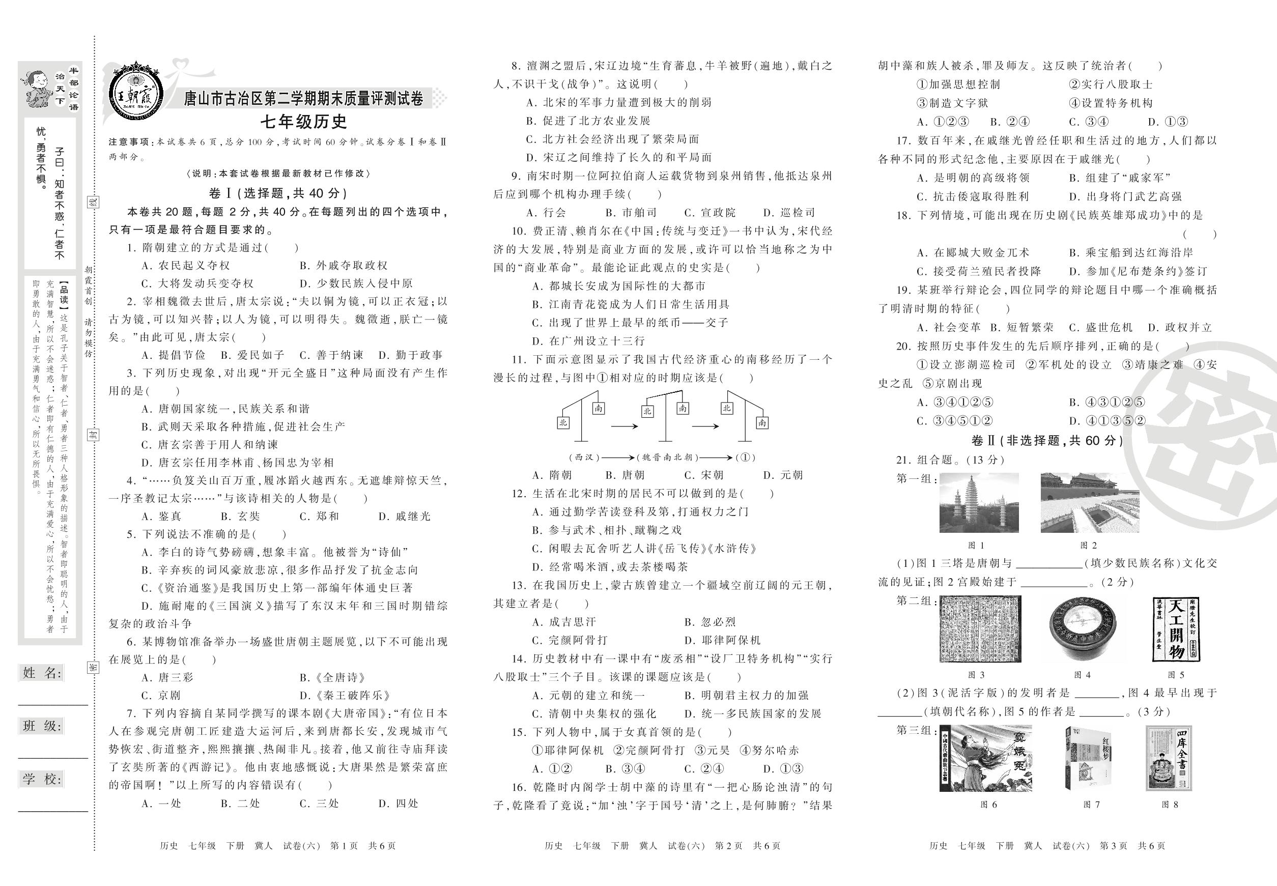 2015-2016学年第二学期唐山市古冶区七年级历史试卷(冀人版)【6】