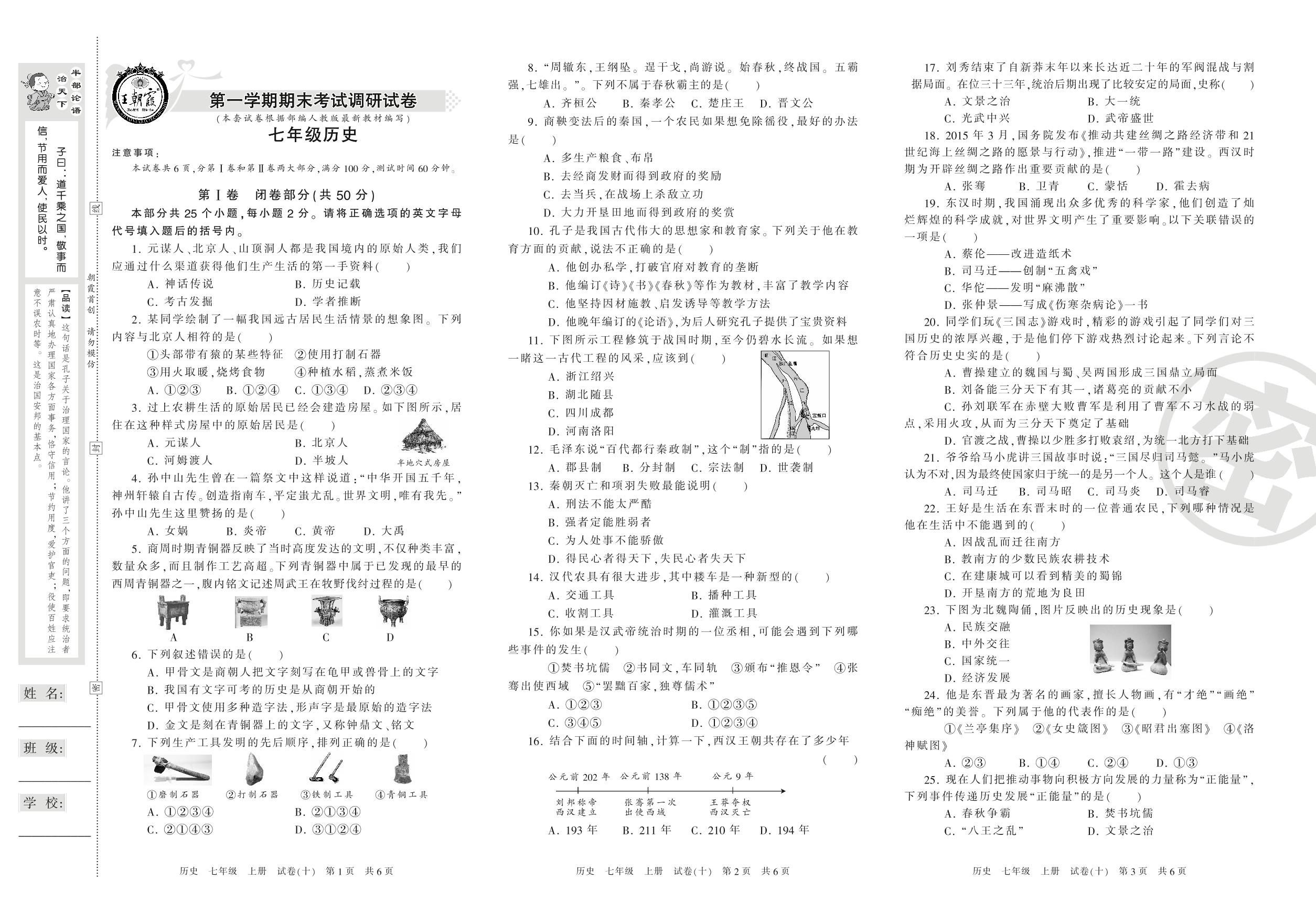 王朝霞期末调研卷七年级上册历史(人教版)【10】