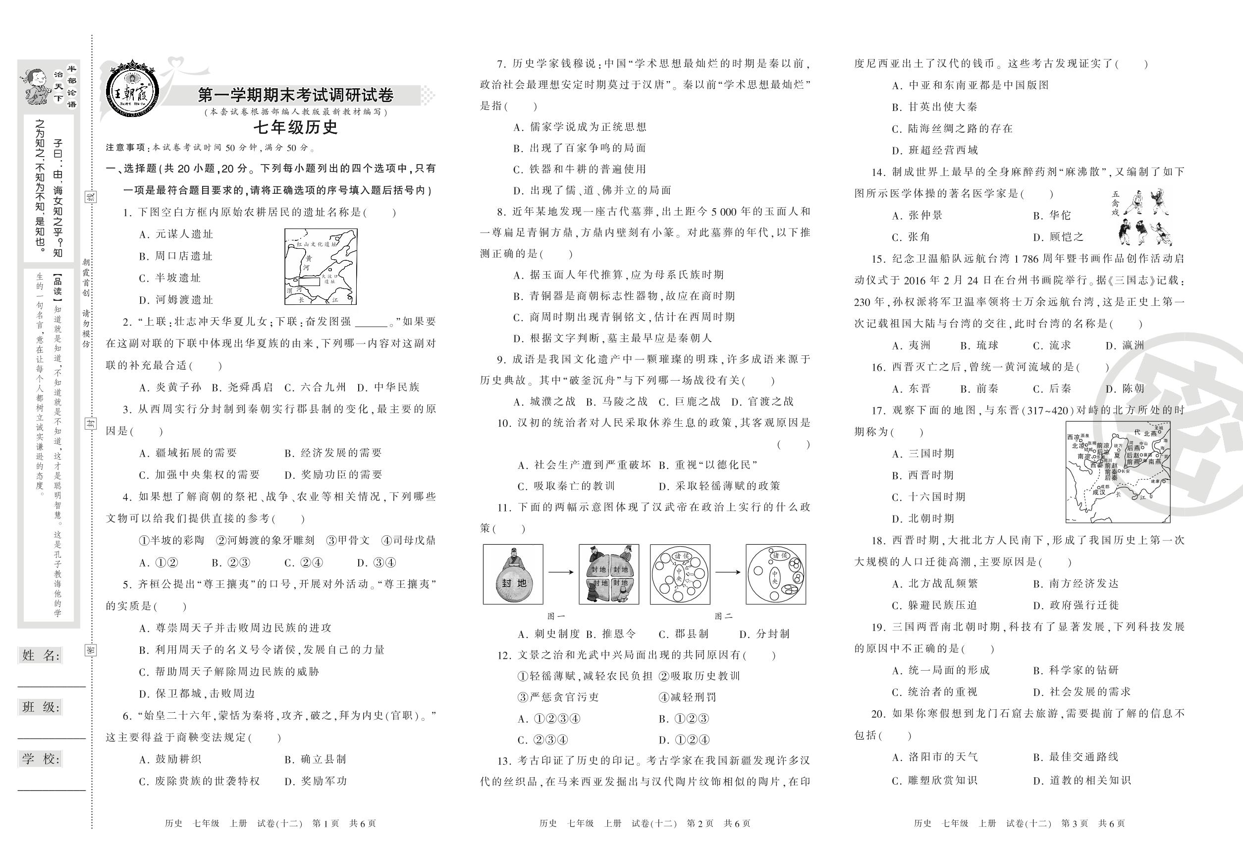 王朝霞期末调研卷七年级上册历史(人教版)【12】