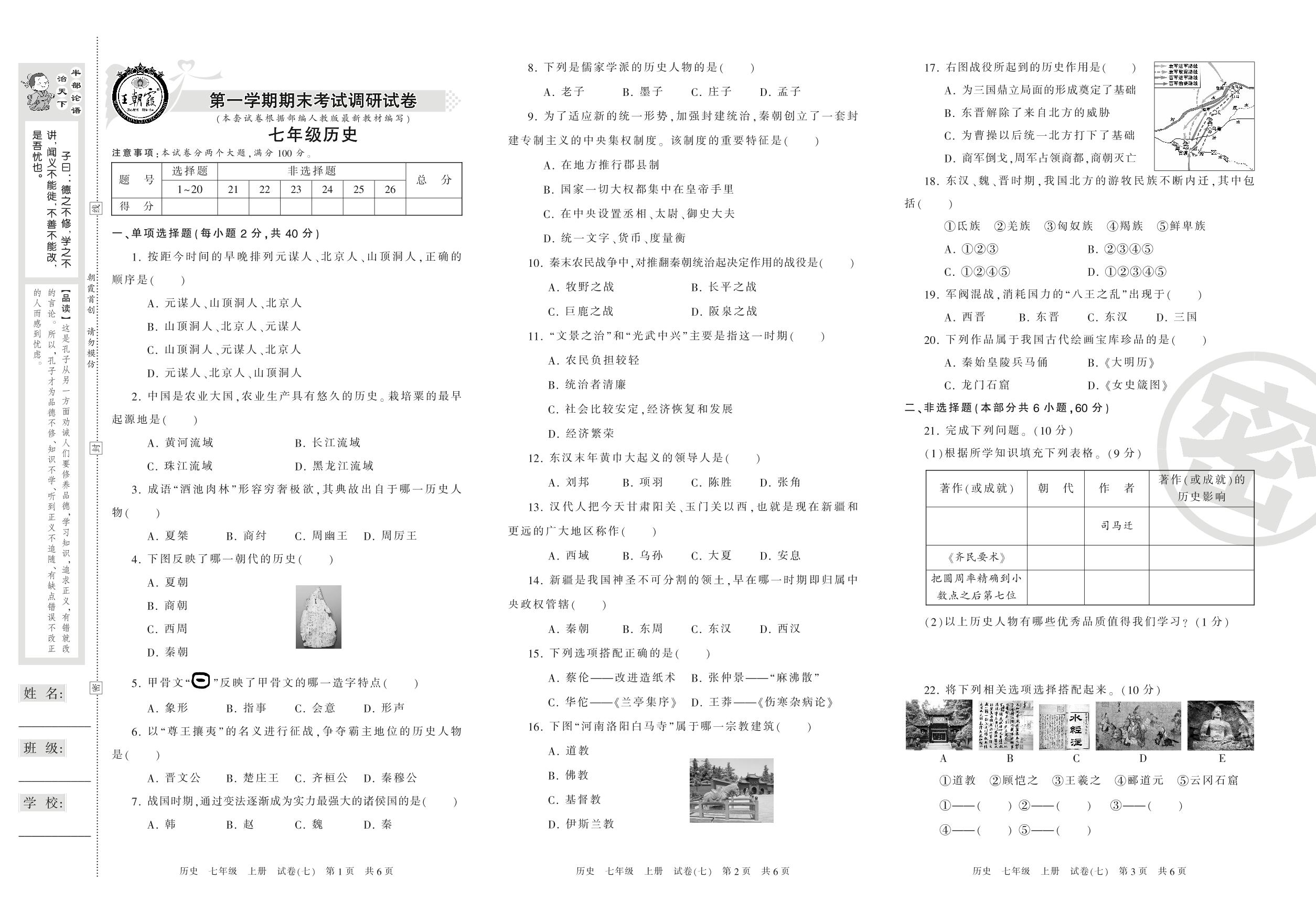 王朝霞期末调研卷七年级上册历史(人教版)【7】