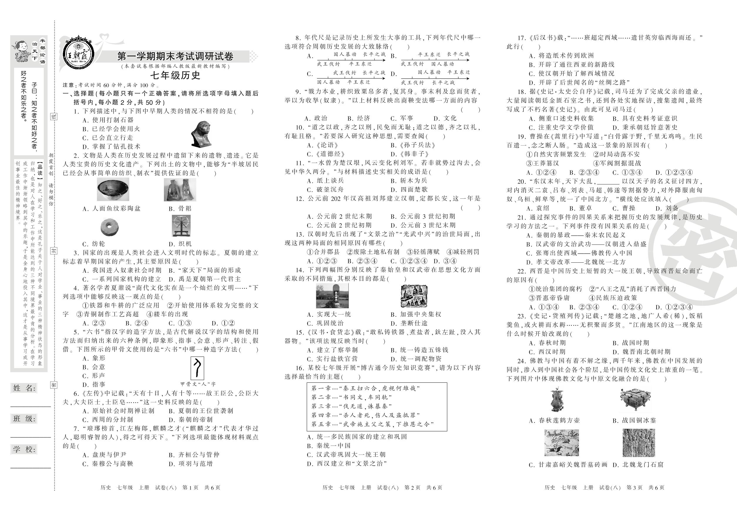 王朝霞期末调研卷七年级上册历史(人教版)【8】