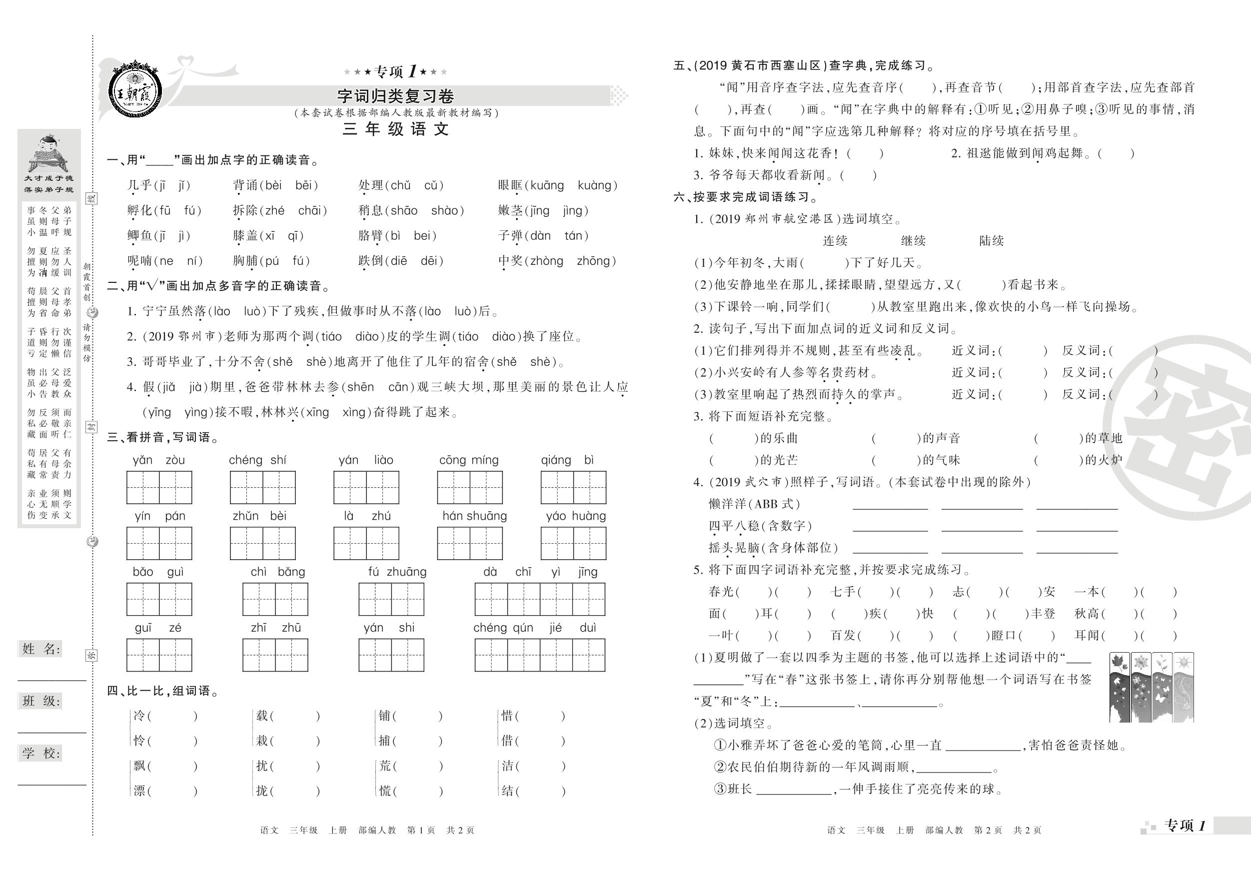 王朝霞期末专项卷——字词、句子与口语交际真题归类复习卷三年级上册语文(人教版)_R21080192328【0】