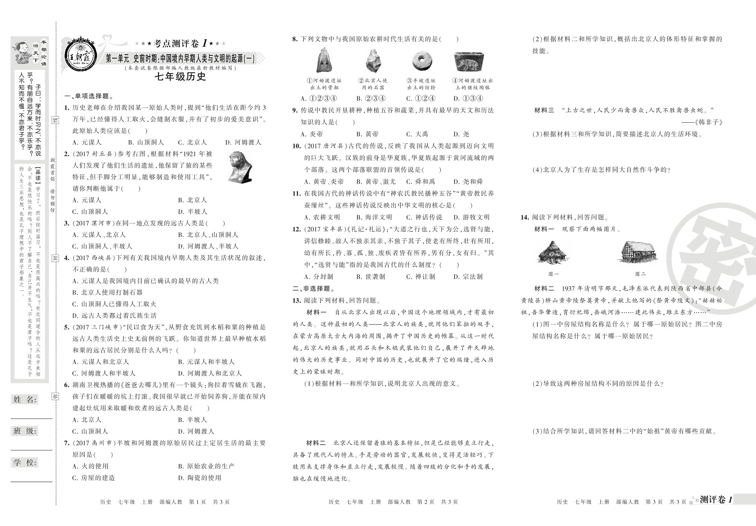 王朝霞期末测评卷——第一单元 史前时期:中国境内早起人类与文明起源(一)(二)七年级上册历史(人教版)_R210810104634【0】