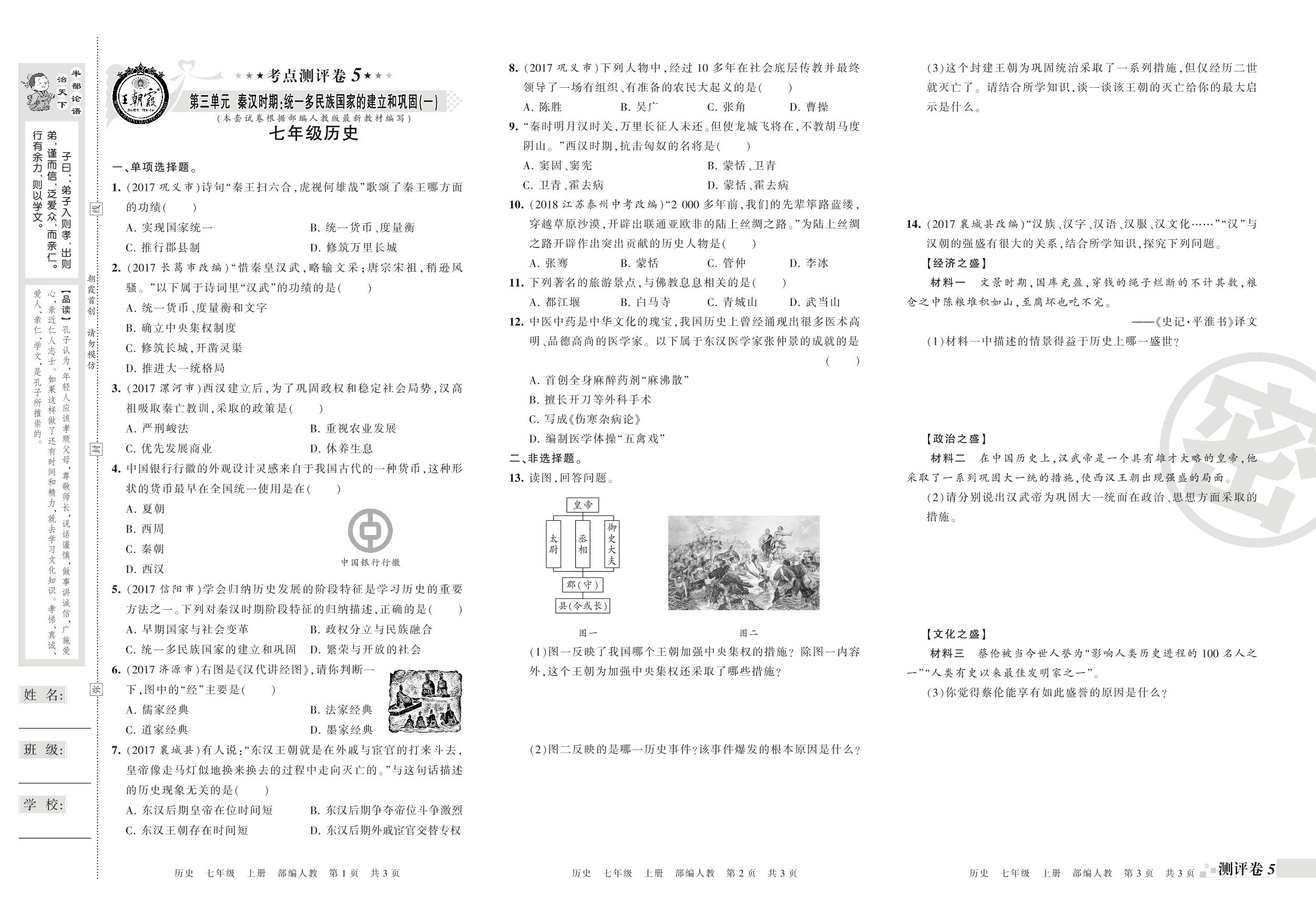 王朝霞期末测评卷——第三单元 秦汉时期:统一的多民族国家的建立和巩固(一)(二)七年级上册历史(人教版)_R210810104701【0】