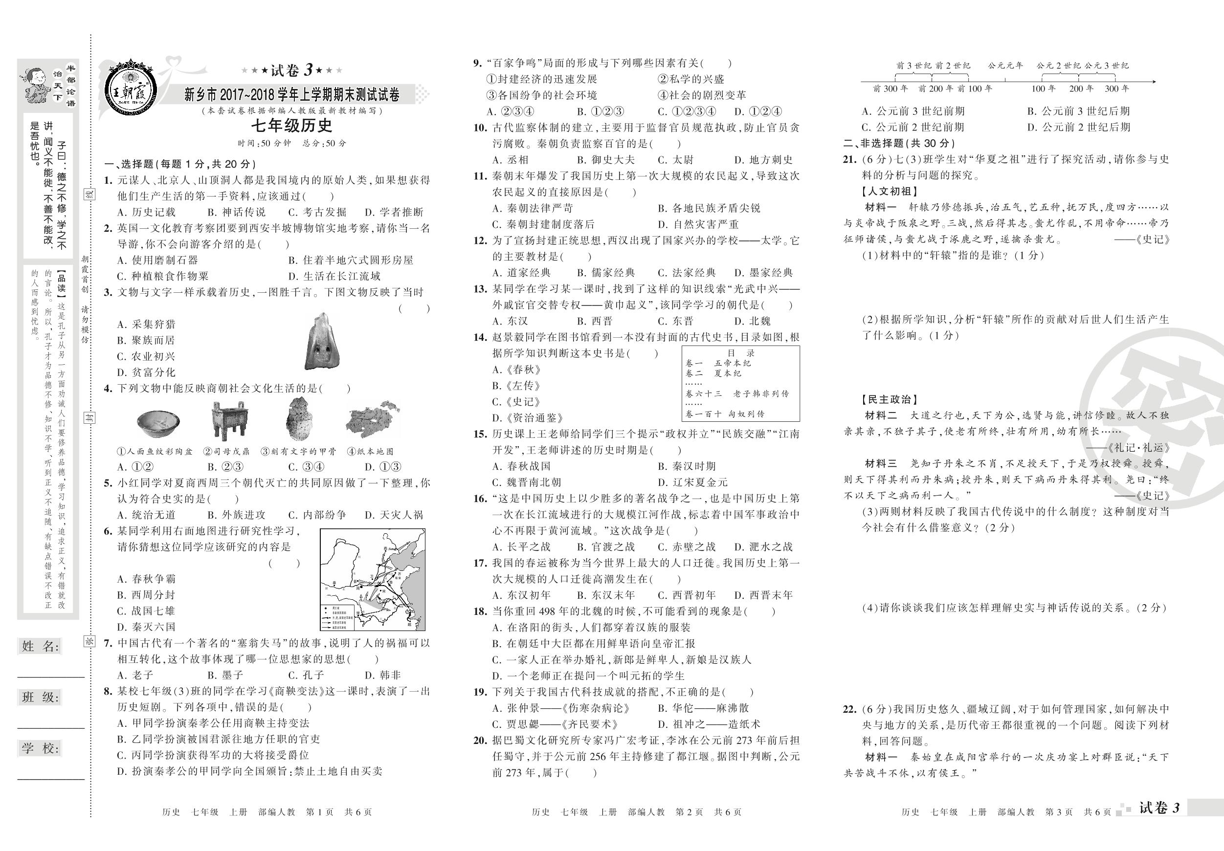 2017-2018学年第一学期新乡市七年级历史试卷(人教版)【3】